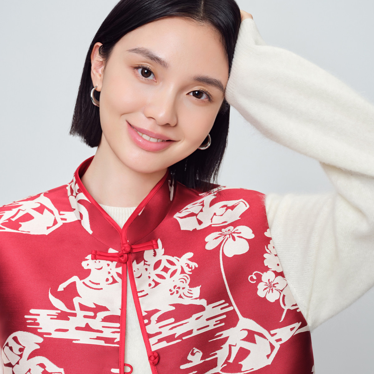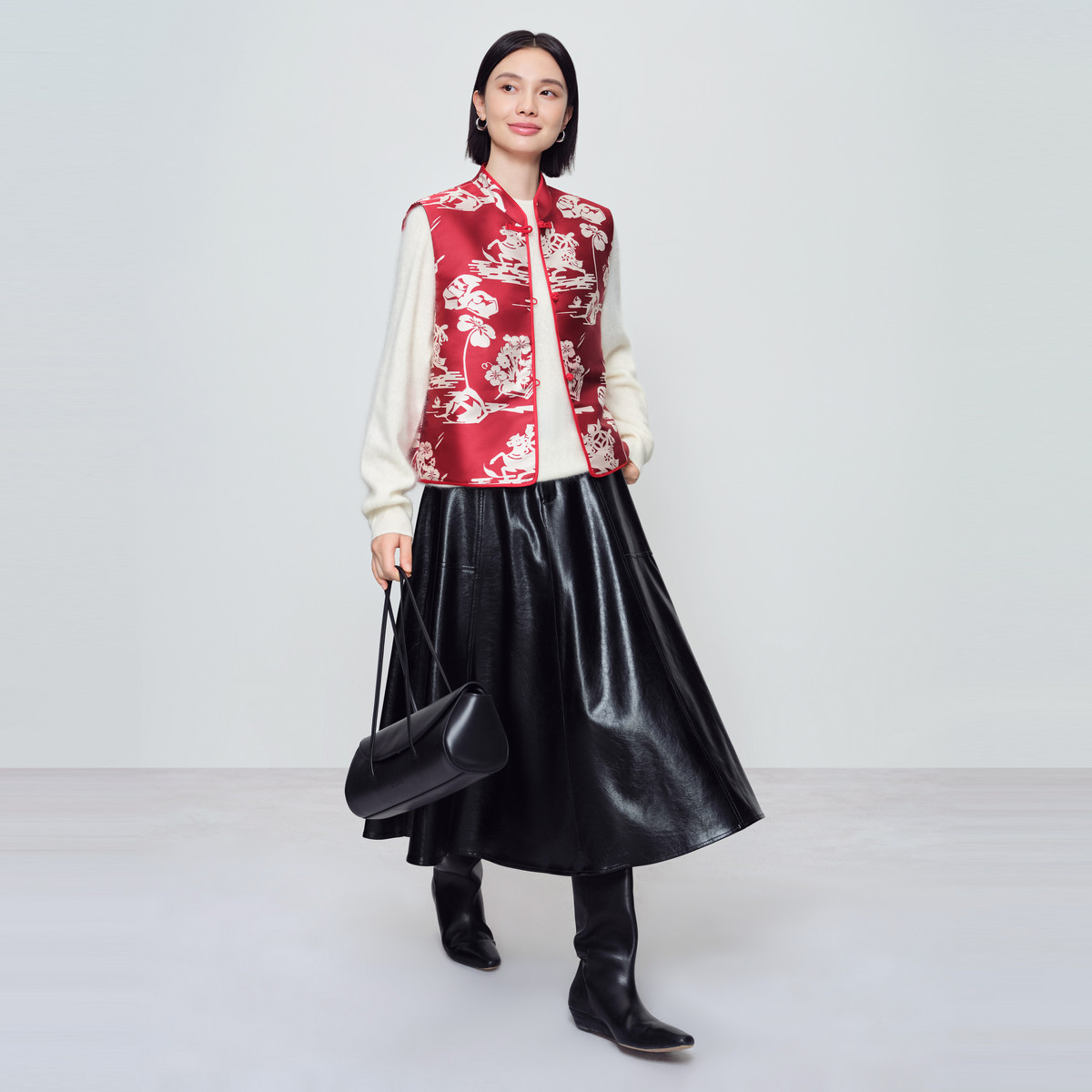 【马上有钱花马甲】naivee25冬新款红色节日新年色织提花马夹短款