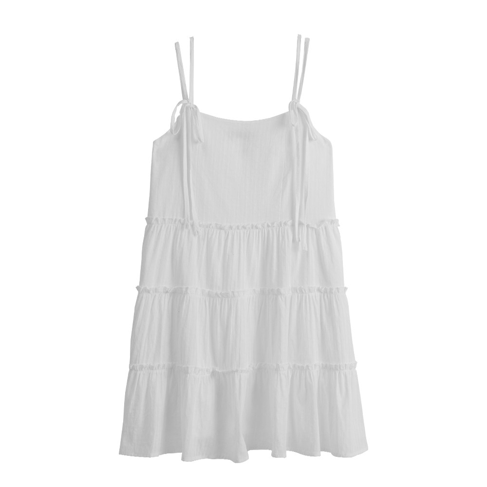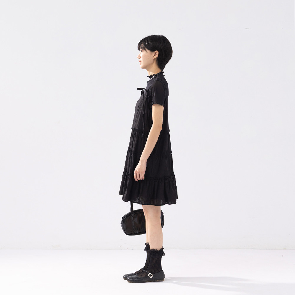 QUEENSHOP 2025秋冬新品女装多层荷叶缇花绑带短连衣裙01087143