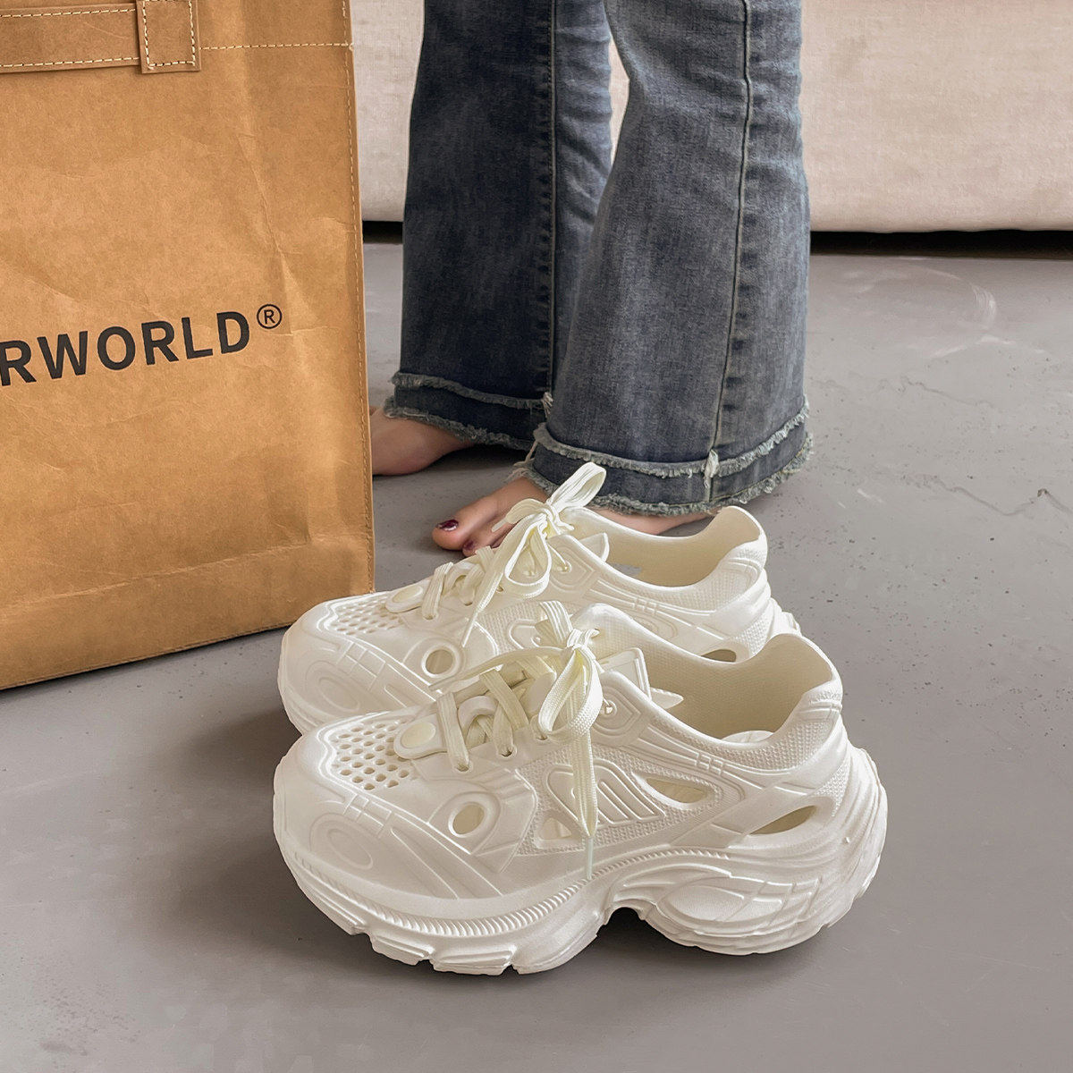 韩版潮流女夏季透气百搭老爹鞋防滑洞洞鞋外穿休闲户外凉鞋溯溪鞋