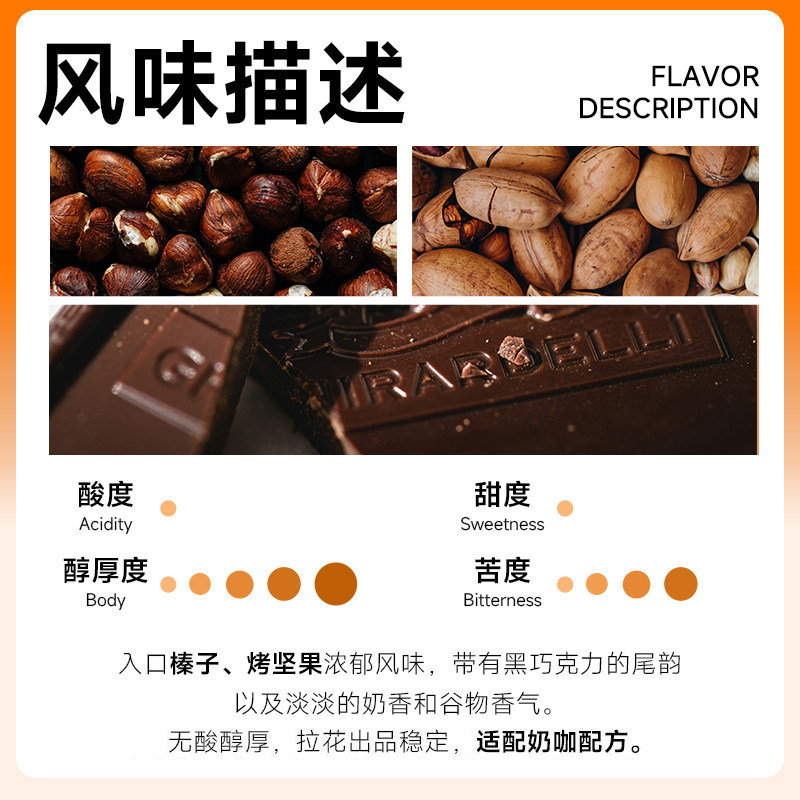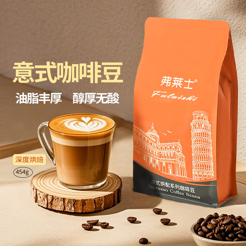 弗莱士意式拼配咖啡豆454g新鲜可现磨美式拿铁黑咖啡粉酒店商用