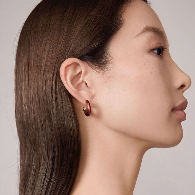 999纯银耳针耳环圈圈大圈秋冬红色耳饰女耳圈高级感轻奢素圈耳夹