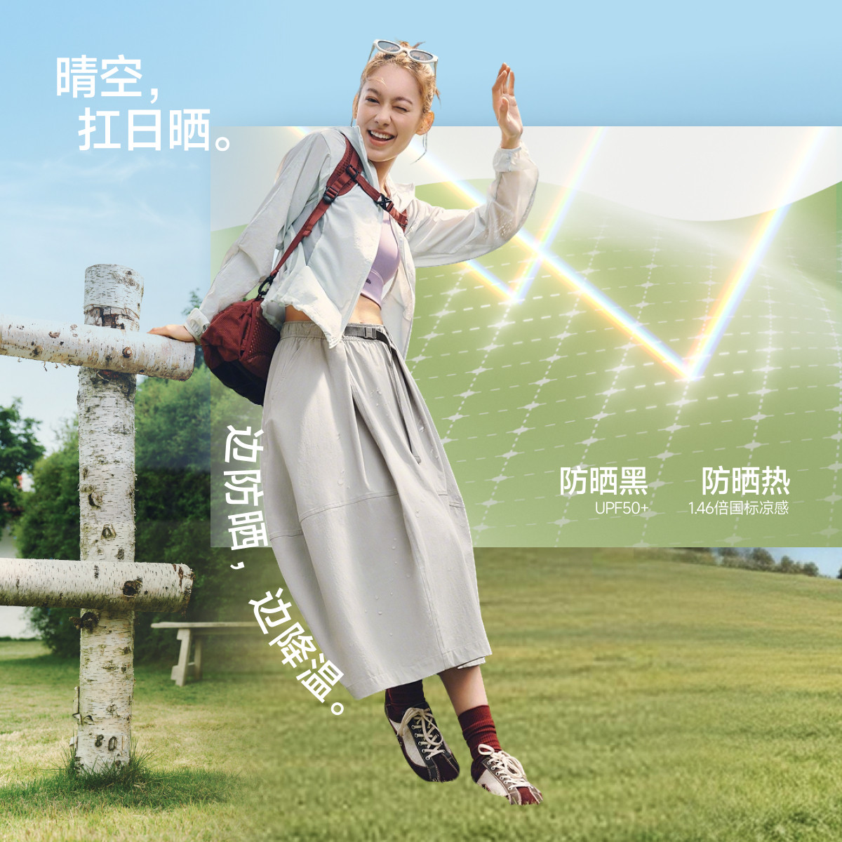 蕉下女士户外花苞裙防晒半身裙女松紧腰茧型半身长裙新款显瘦裙子