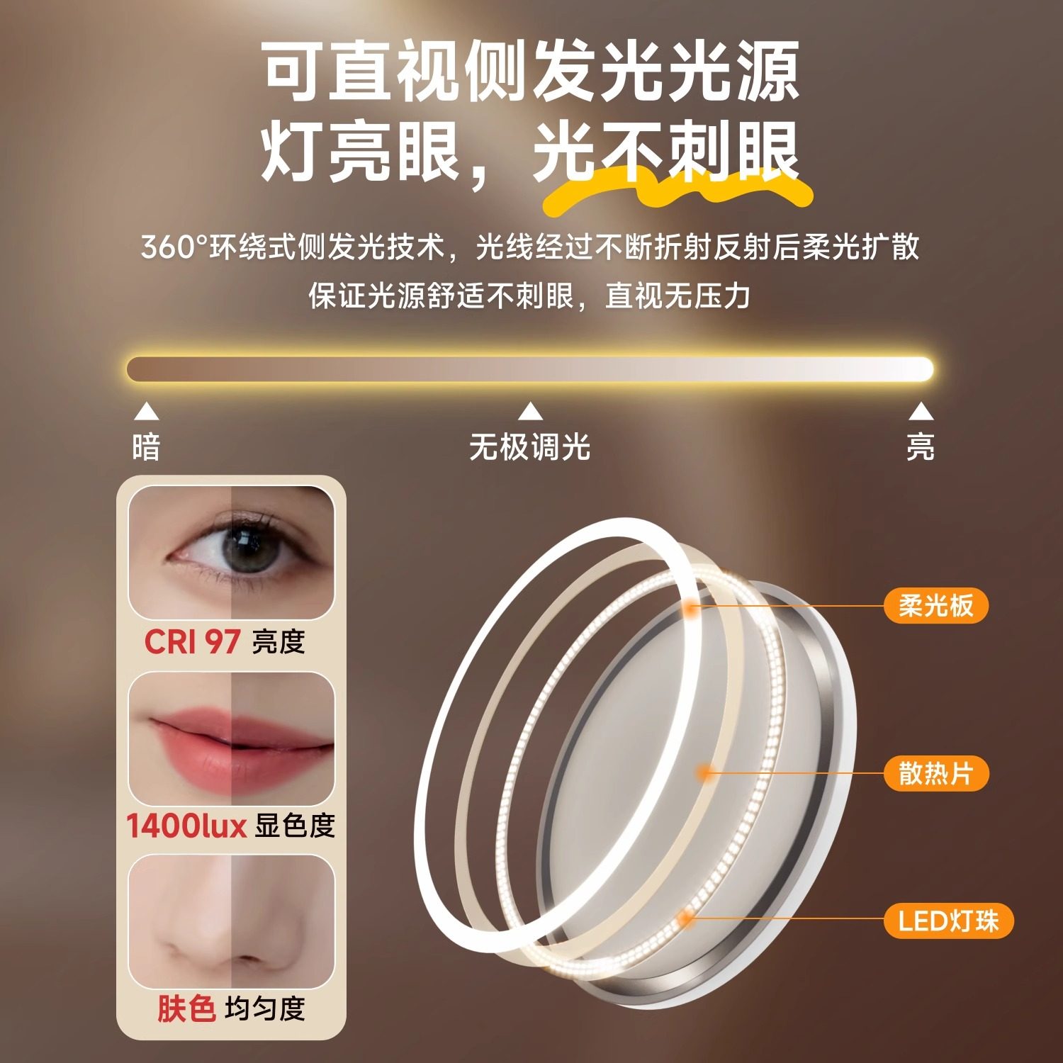 led台式智能镜子化妆镜带灯女生卧室梳妆台学生宿舍桌面ins梳妆镜