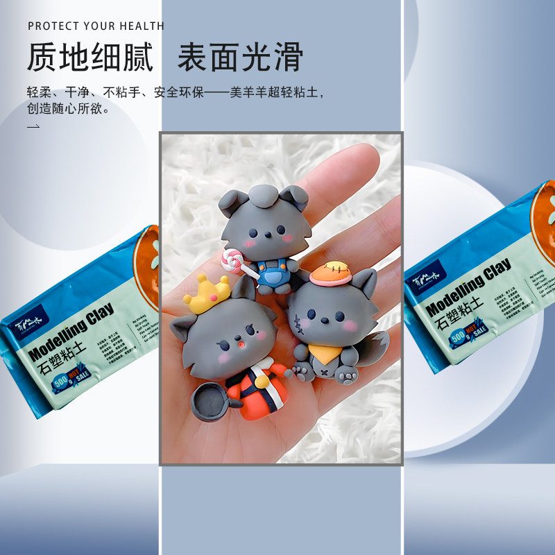 石塑粘土手工diy材料包儿童丙烯颜料小配件人偶定制免烧免烤白色黏土陶艺入门250克/500克时速可塑