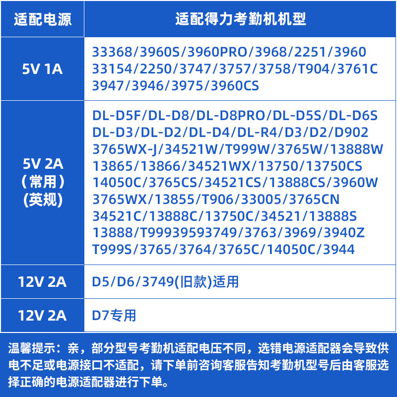 考勤机电源适配器 电源线适用得力D5F/D7/3960/34521等型号考勤机5V2A/5V1A【付款前联系在线客服确定型号】