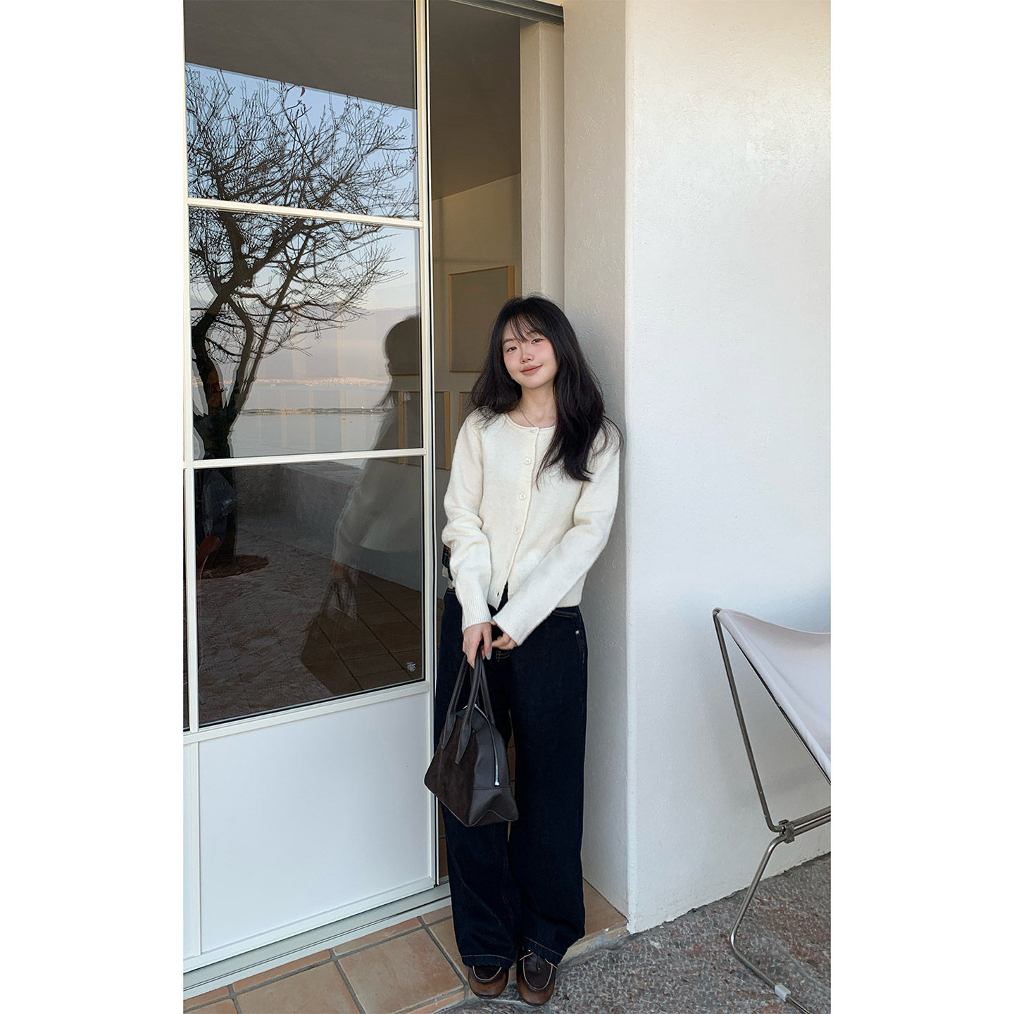 2026新款女装宽松针织开衫纯棉春秋外套纯色百搭圆领毛衣针织衫潮
