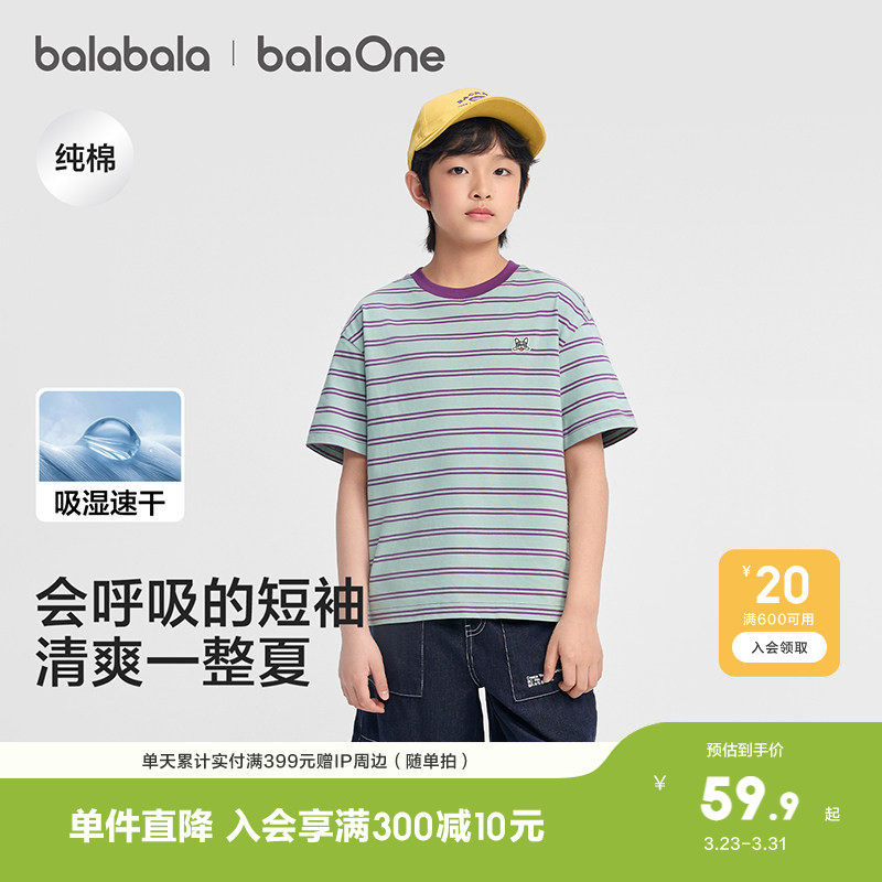 巴拉巴拉童装儿童短袖t恤男童女童2026新款夏装条纹速干亲子上衣