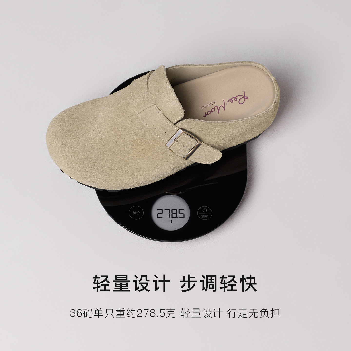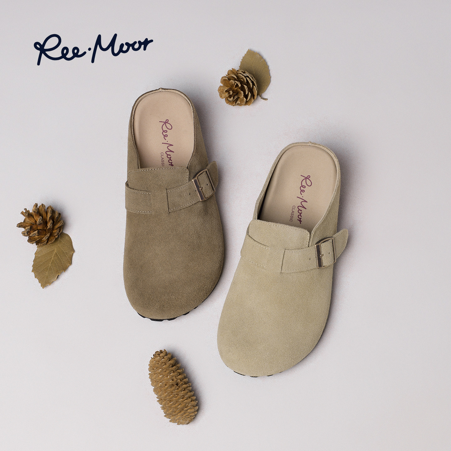 REEMOOR睿慕2026春季新款反绒皮勃肯鞋女包头半拖鞋外穿懒人鞋