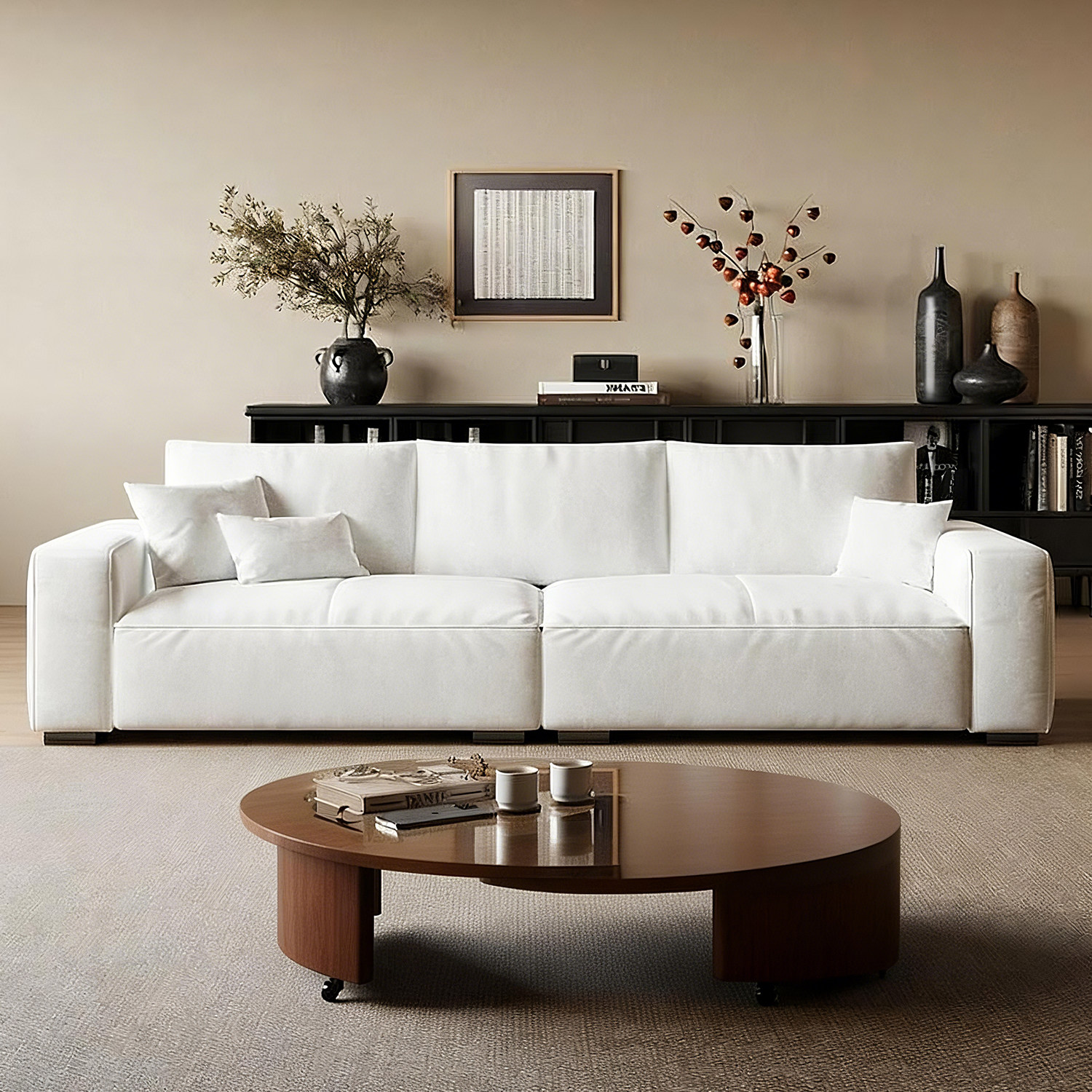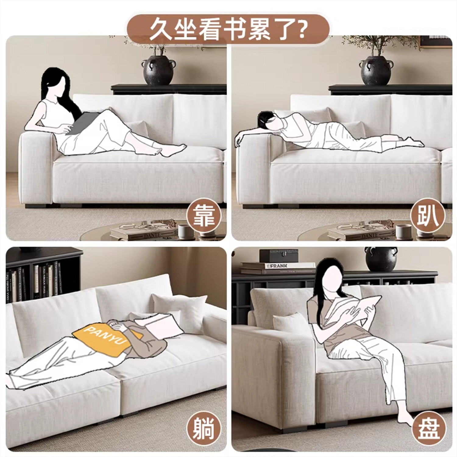 上进布艺沙发侘寂风客厅棉麻中古小户型北欧简约豆腐块直排猫抓布