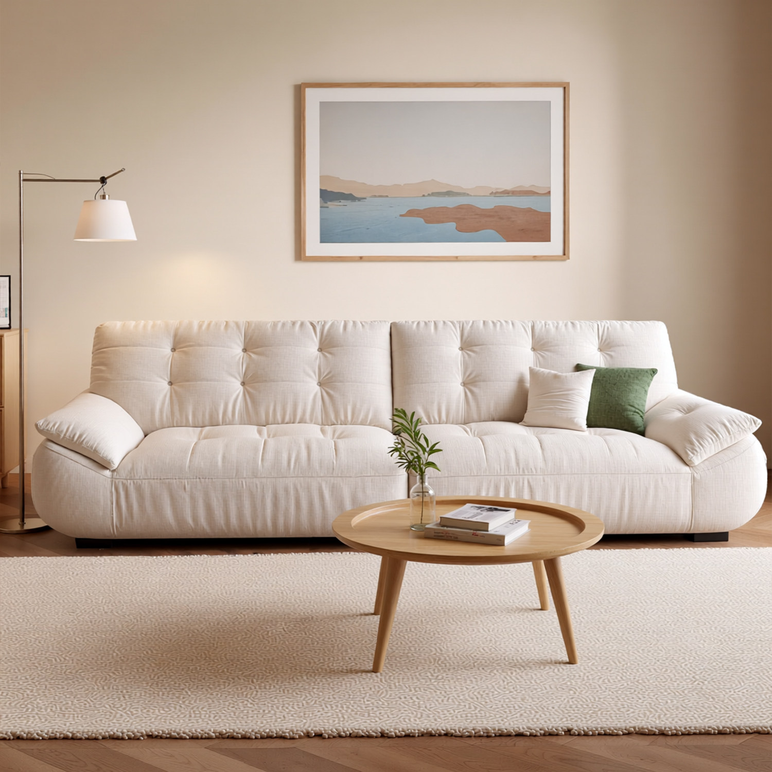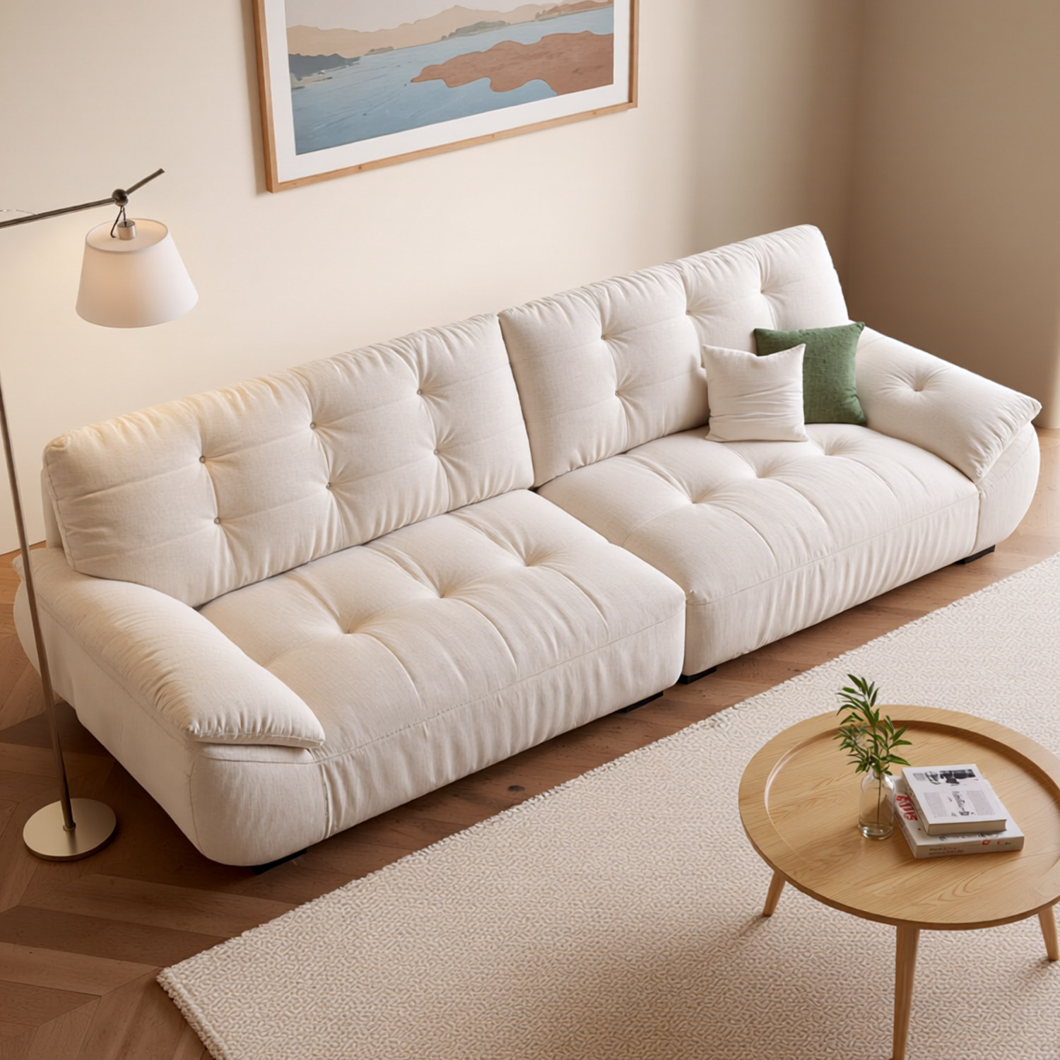奶油风布艺沙发客厅2025新款小户型家用可拆洗三人位直排云朵沙发
