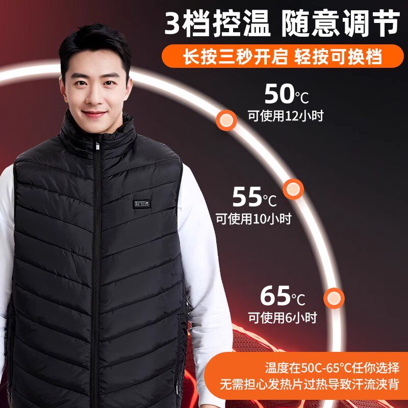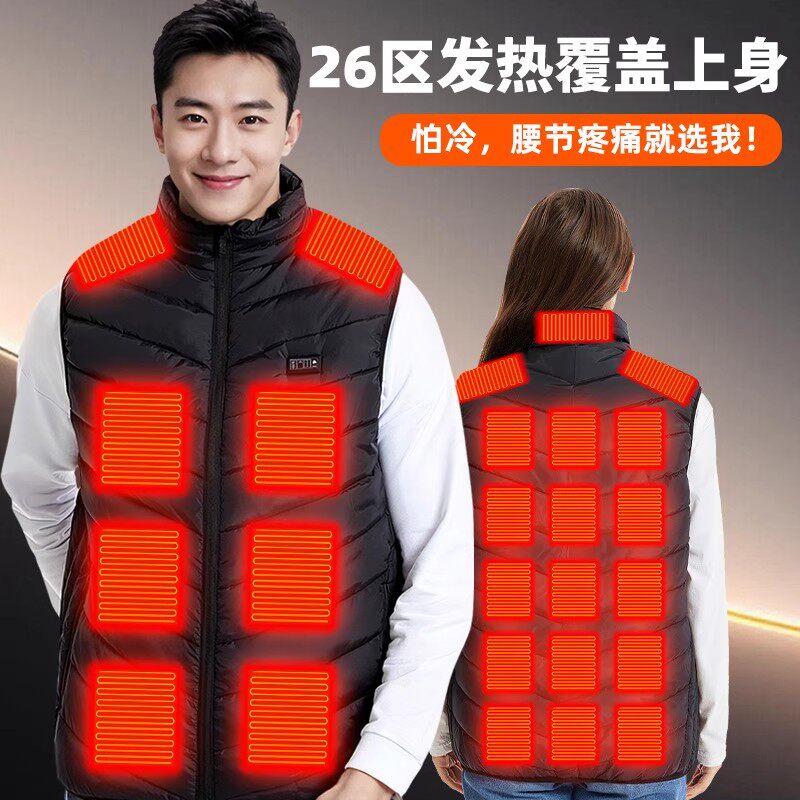 羽绒棉26区石墨烯电热马甲智能温控充电加热保暖背心发热衣服冬季