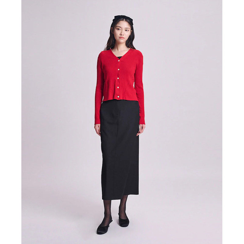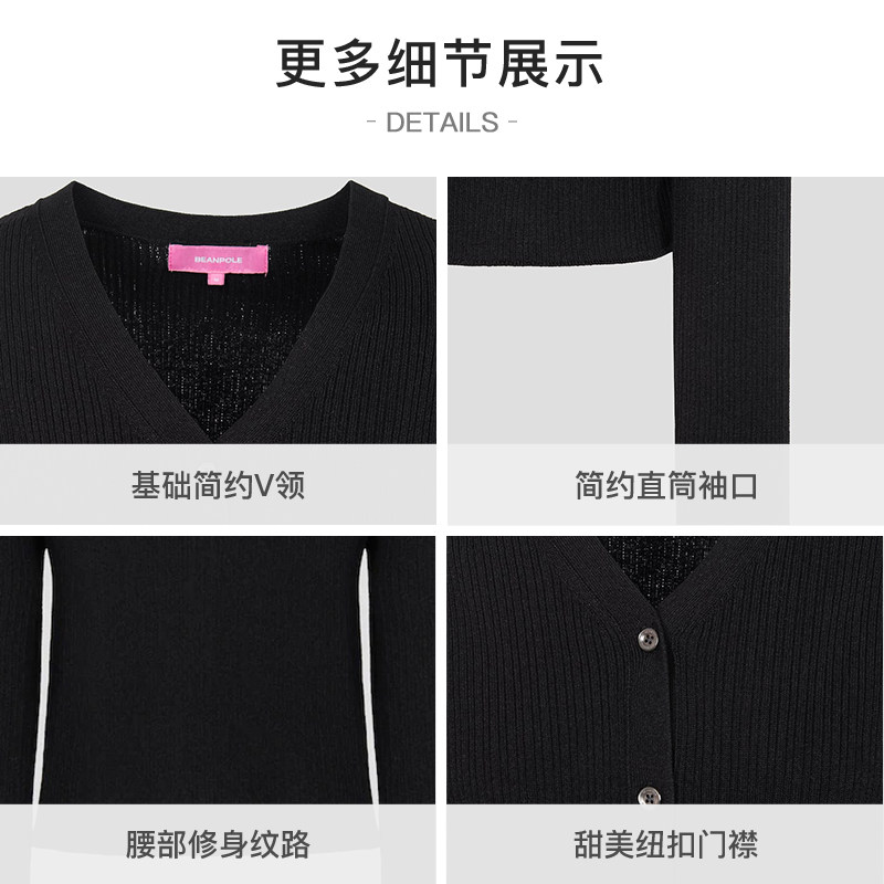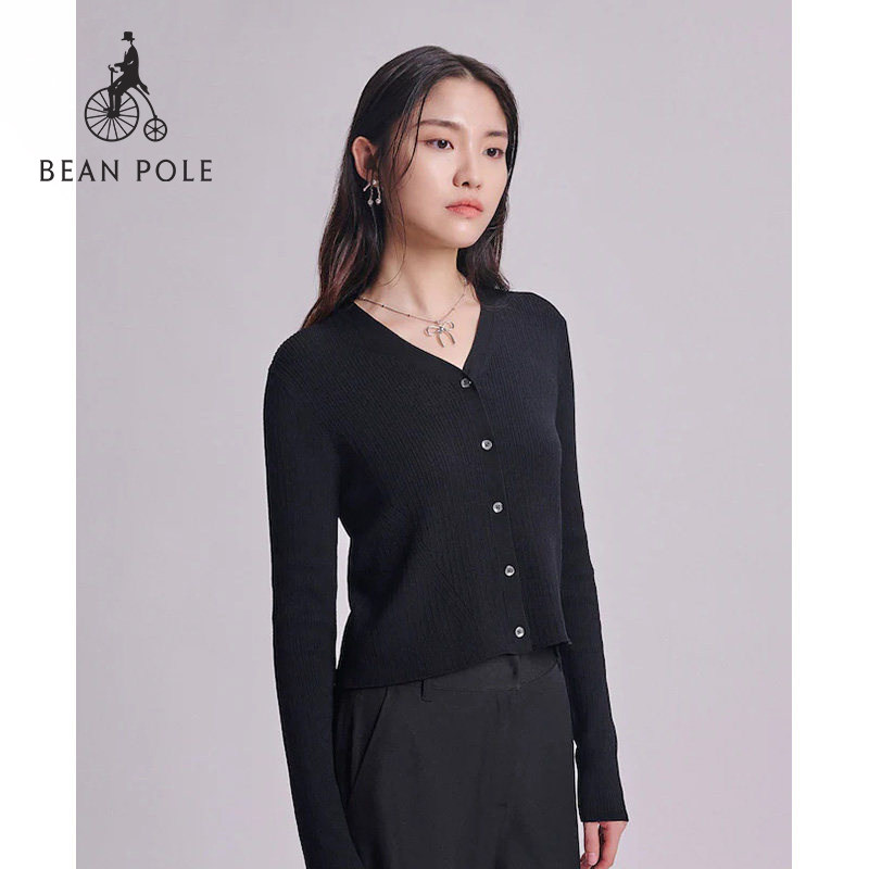 BEANPOLE滨波 女士时尚休闲优雅气质罗纹V领新年红色毛衣针织开衫