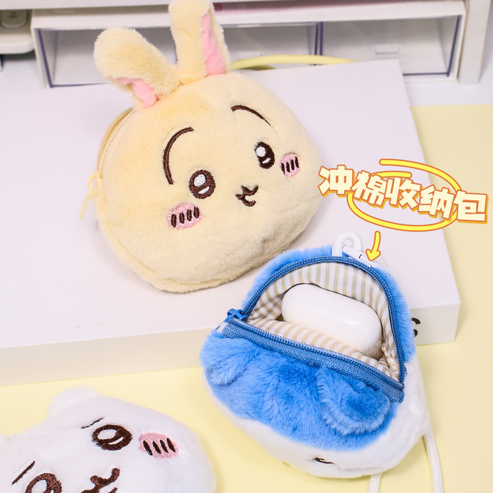 毛绒耳机壳套日系动漫收纳保护套拉链钥匙扣儿童女学生零钱包挂件