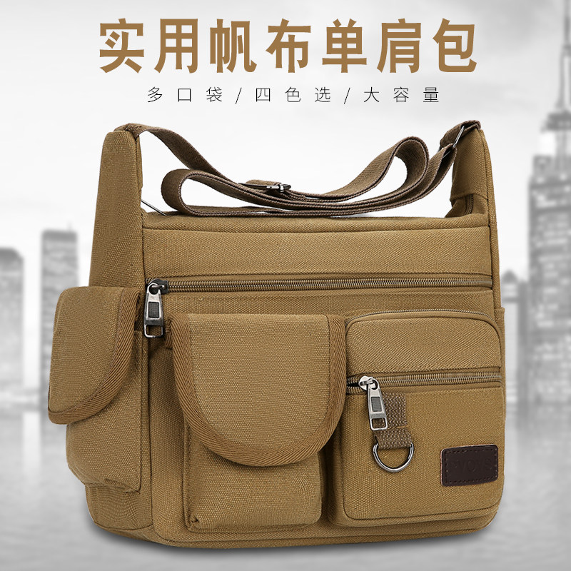 男士帆布包单肩包 韩版休闲 帆布男包 商务斜挎包小跨包背包