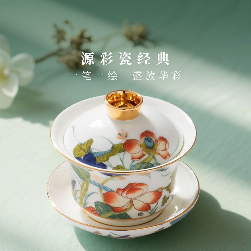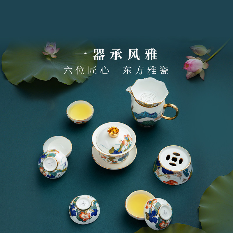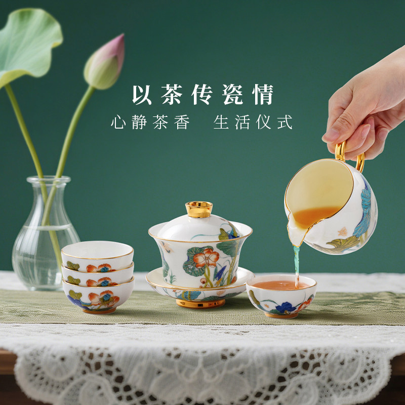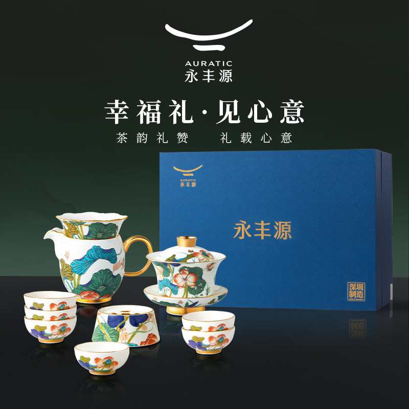 永丰源幸福和鸣12头功夫茶具套装陶瓷茶杯盖碗送礼