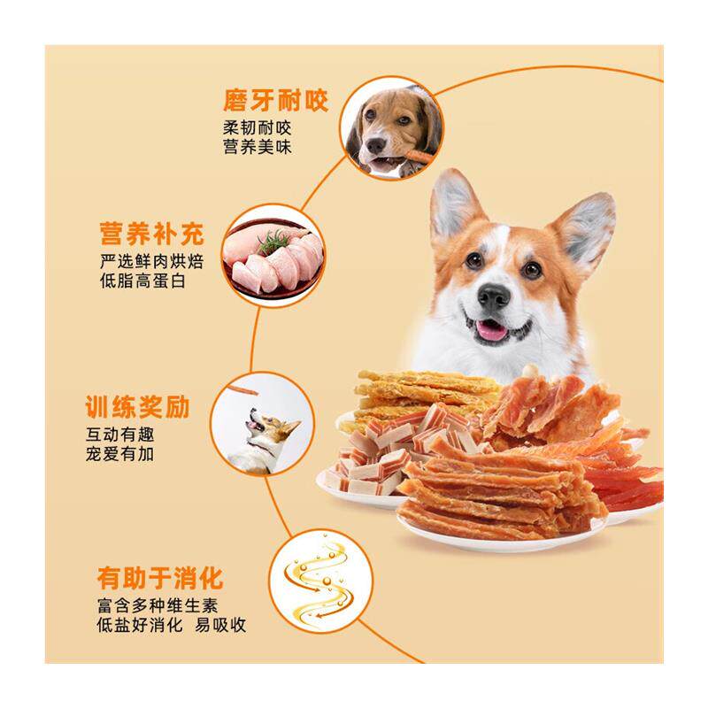 路斯宠物狗狗零食鸡肉干肉条切丝软丝训练奖励零食100g 可口三明