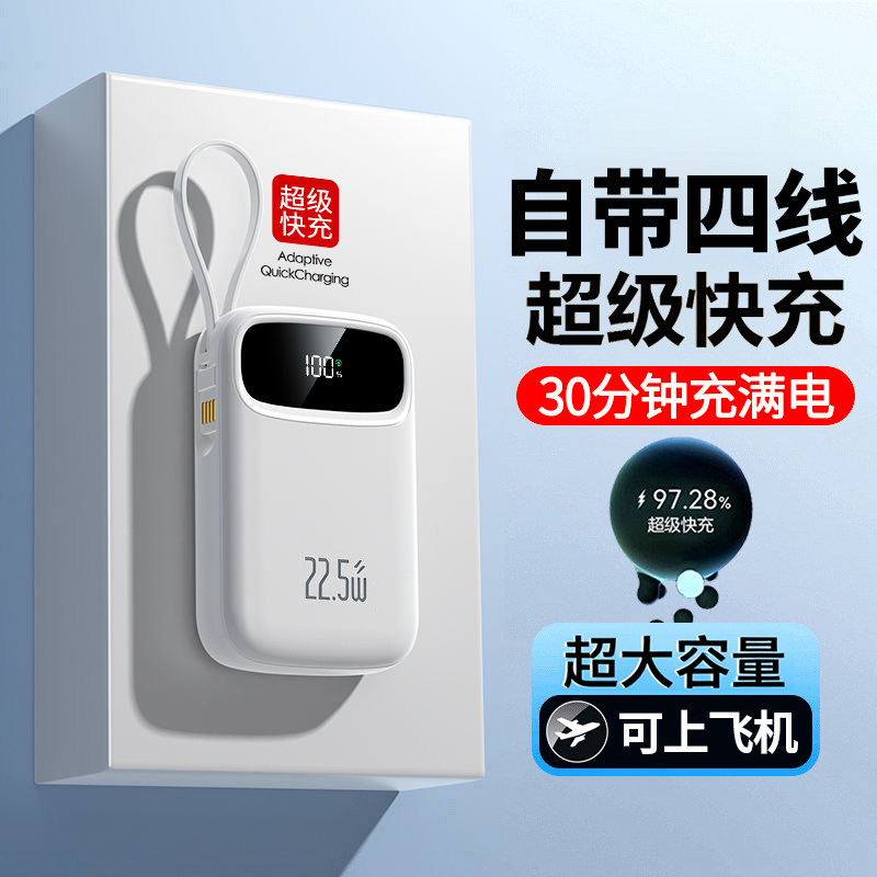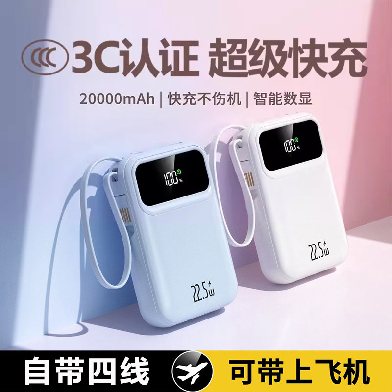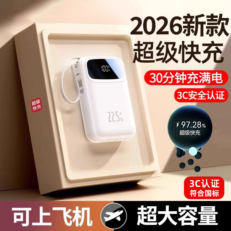 2026新款充电宝3C认证超大容量超级快充20000毫安正品自带线迷你超薄小巧便携移动电源适用苹果专用可上飞机