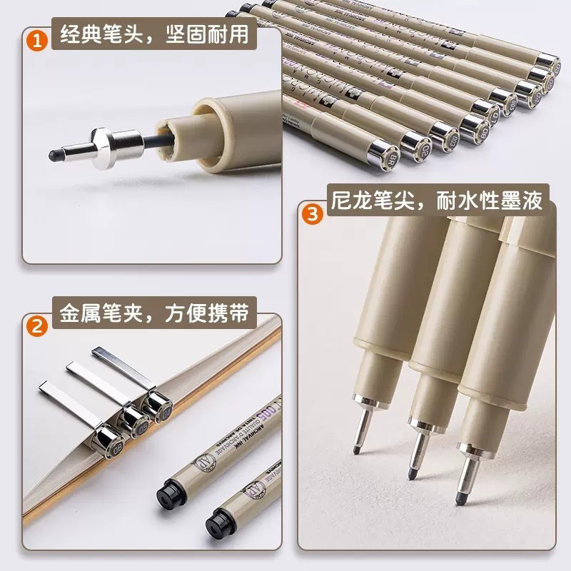 mobee针管笔美术专用小学生防水勾线笔手柔绘笔画笔画图漫画描边绘画彩色黑笔设计绘图幼儿园儿童速写细头笔