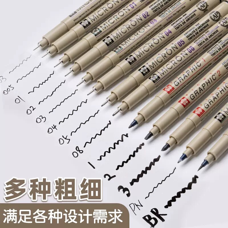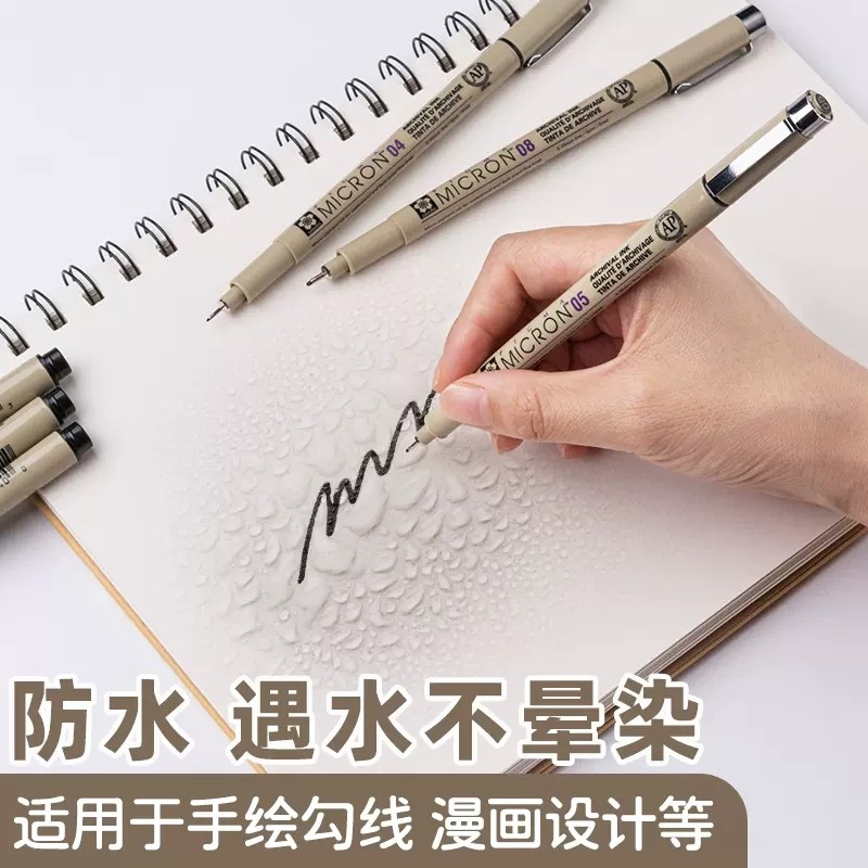 日本SAKURA进口樱花针管笔黑色水性防水0.8漫画勾线笔手绘套装0.1mm美术生专用绘图建筑设计笔景观0.5全套003