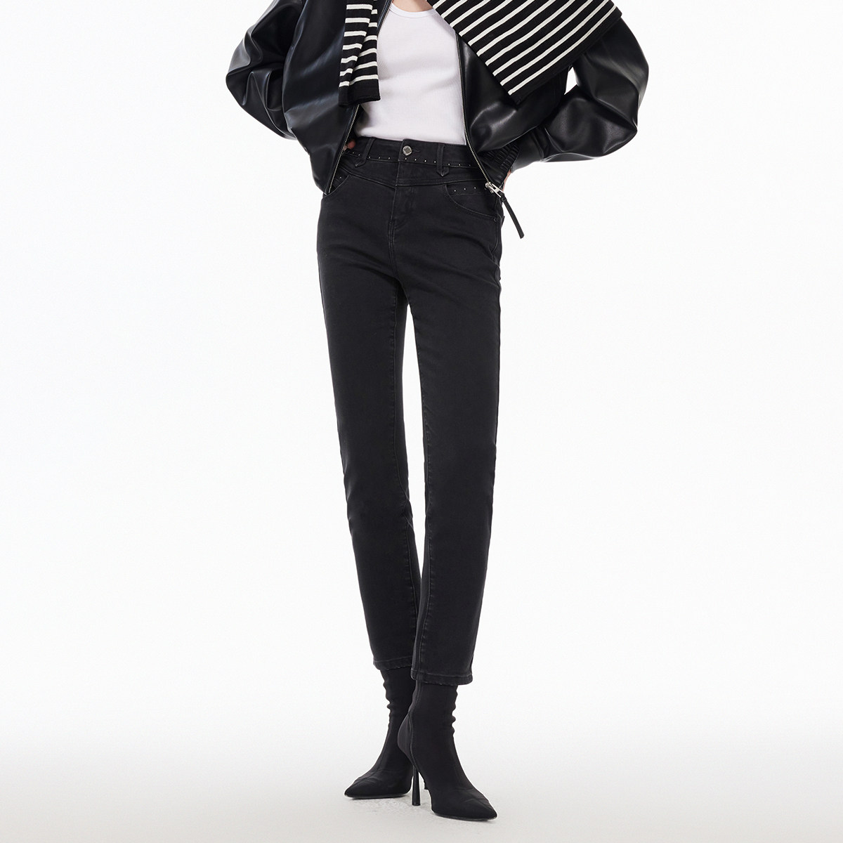 Vero Moda牛仔裤2025冬季新款女高腰显瘦九分裤铅笔裤325449004