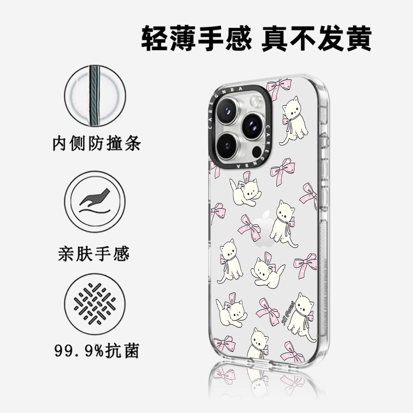 CAREGNBA联名蝴蝶结小猫咪适用苹果16ProMax手机壳iPhone15pro透明14plus亚克力13防摔12全包11网红女pro磁吸