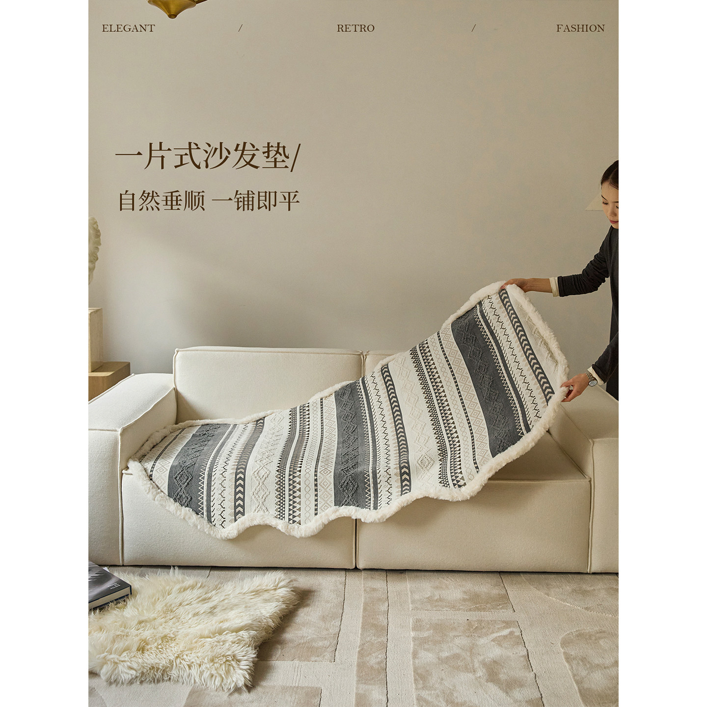 直排沙发垫四季通用2026新款固定防滑盖布轻奢防猫抓一片式套罩垫