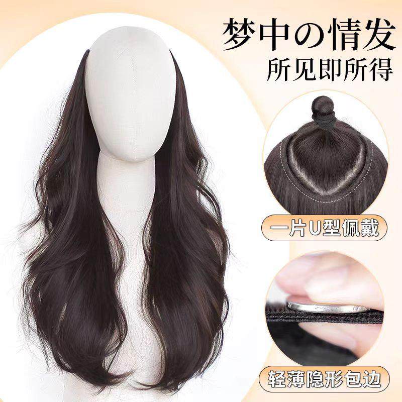 挂耳染发片卷发挑染假发片女一片式隐形彩色接发贴片蓬松漂染长发