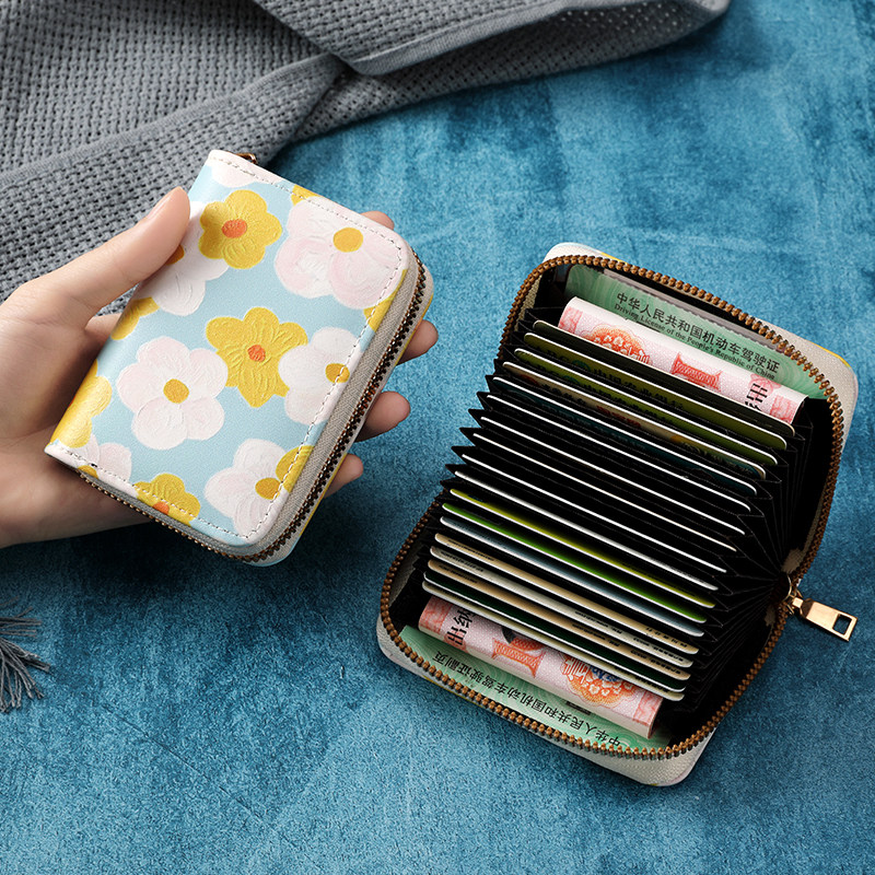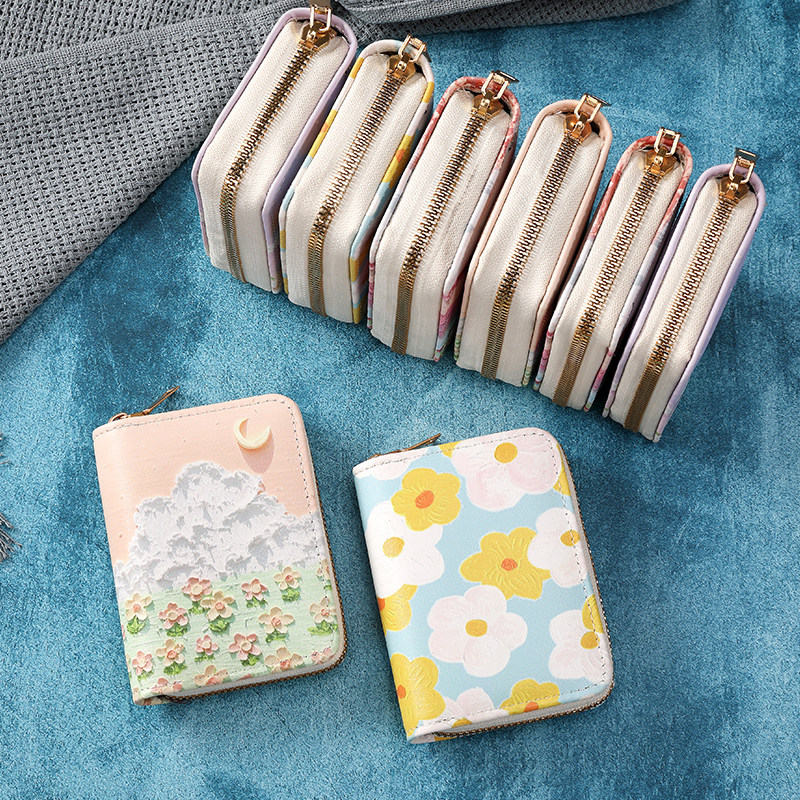 梵高花卉风卡包女小众高级感防消磁卡套多卡位可爱小巧零钱包新款