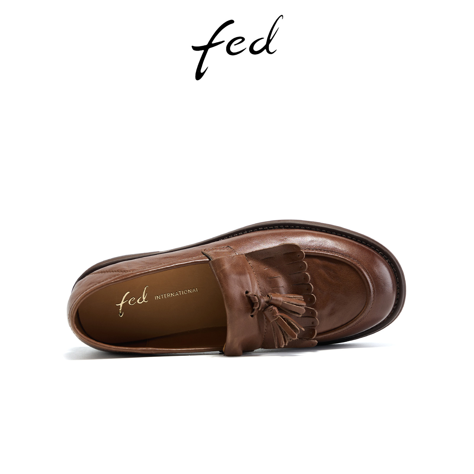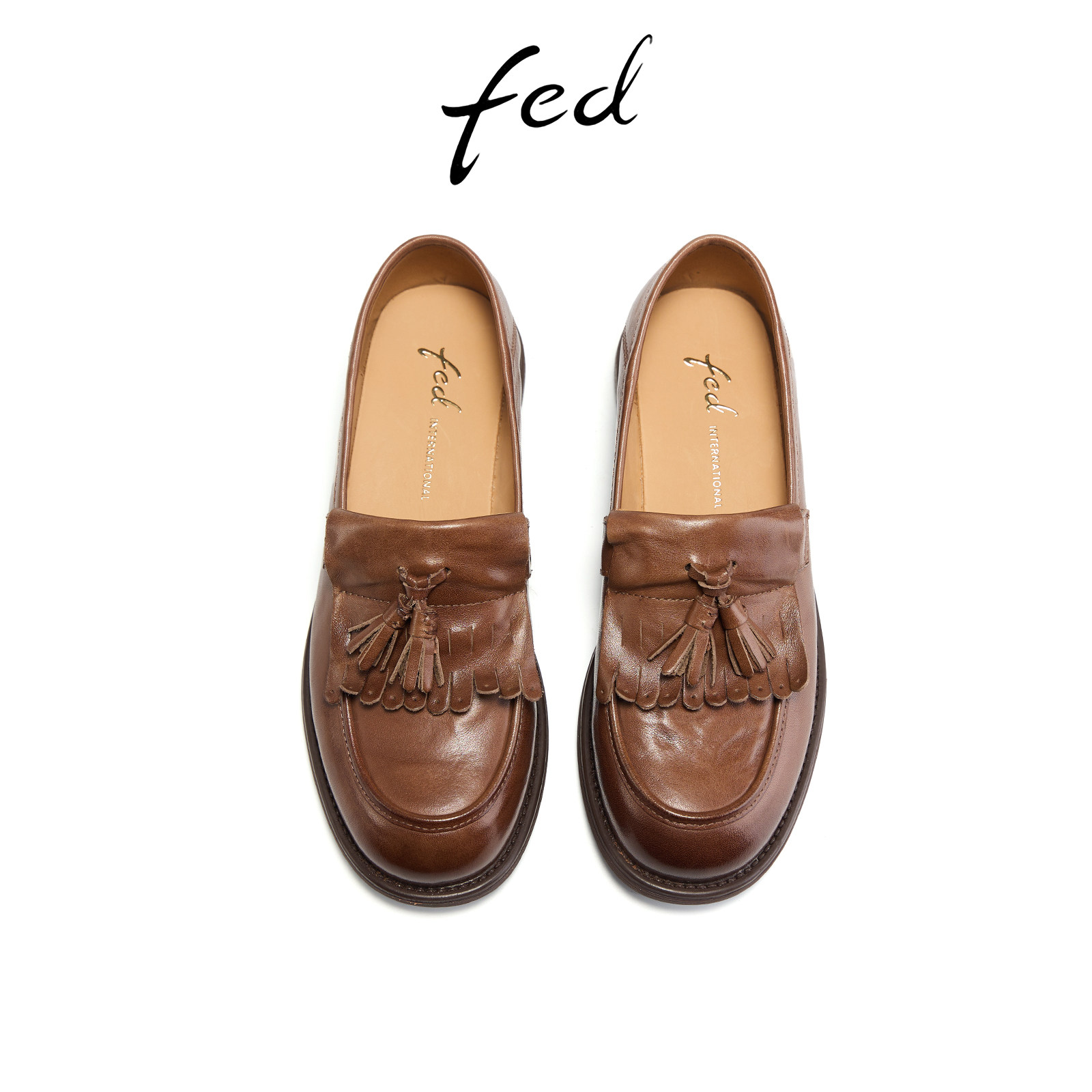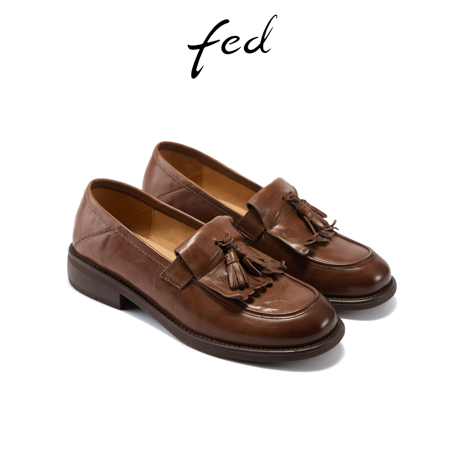 fed复古小皮鞋春季新款女鞋沙影垂痕乐福鞋真皮粗跟单鞋女ZCA118
