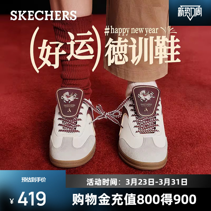 斯凯奇闪穿德训鞋2026新品好运红色复古板鞋男女同款潮流低帮鞋