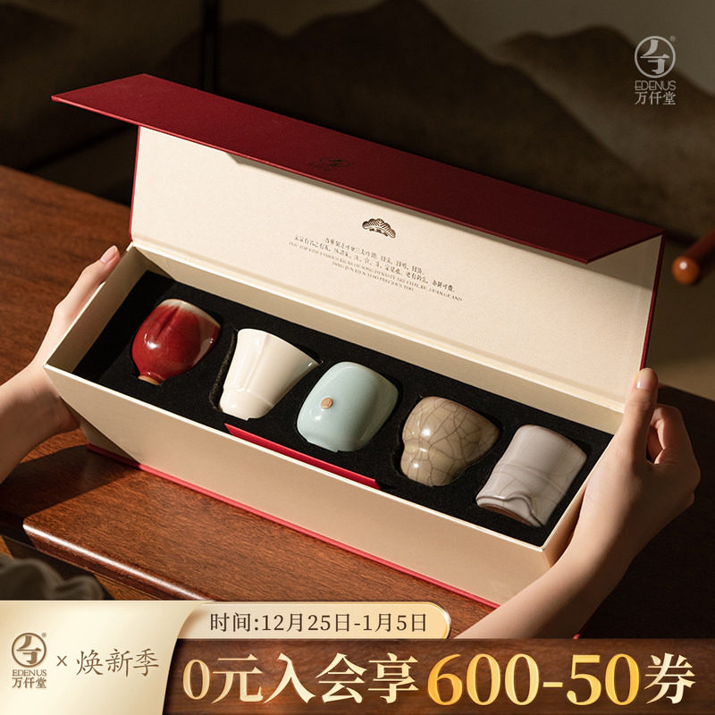 万仟堂茶杯主人杯个人专用高档功夫茶杯套装礼盒送人五大名窑杯