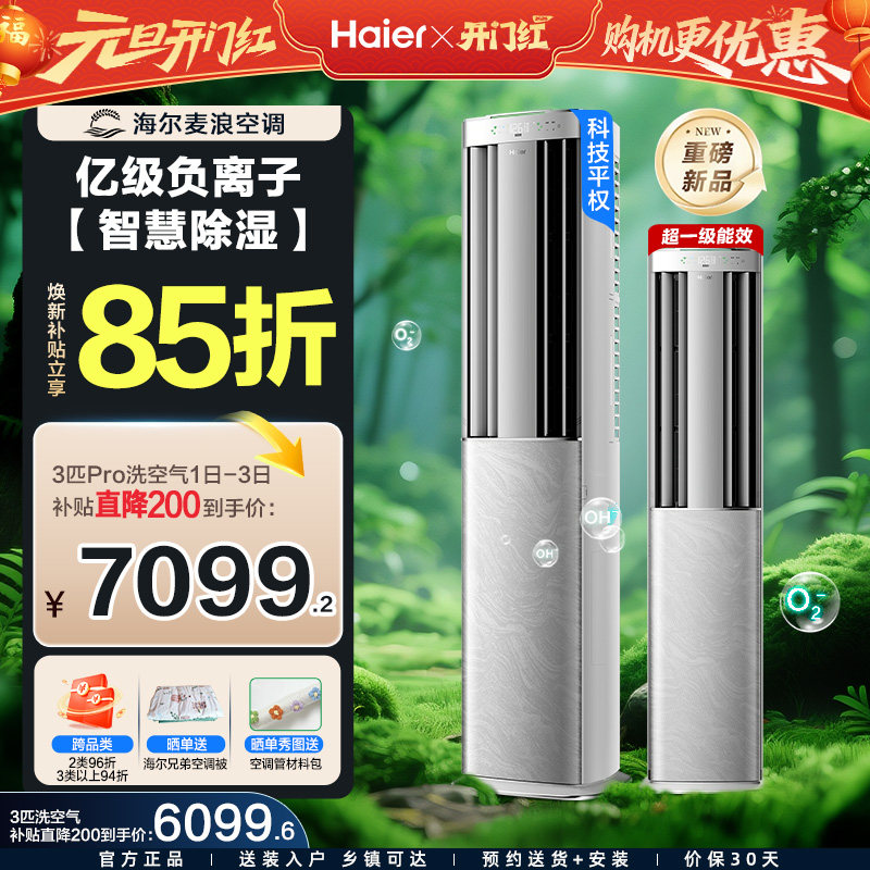 【海尔麦浪】洗空气科技款Pro空调3匹新一级变频客厅立式新品柜机