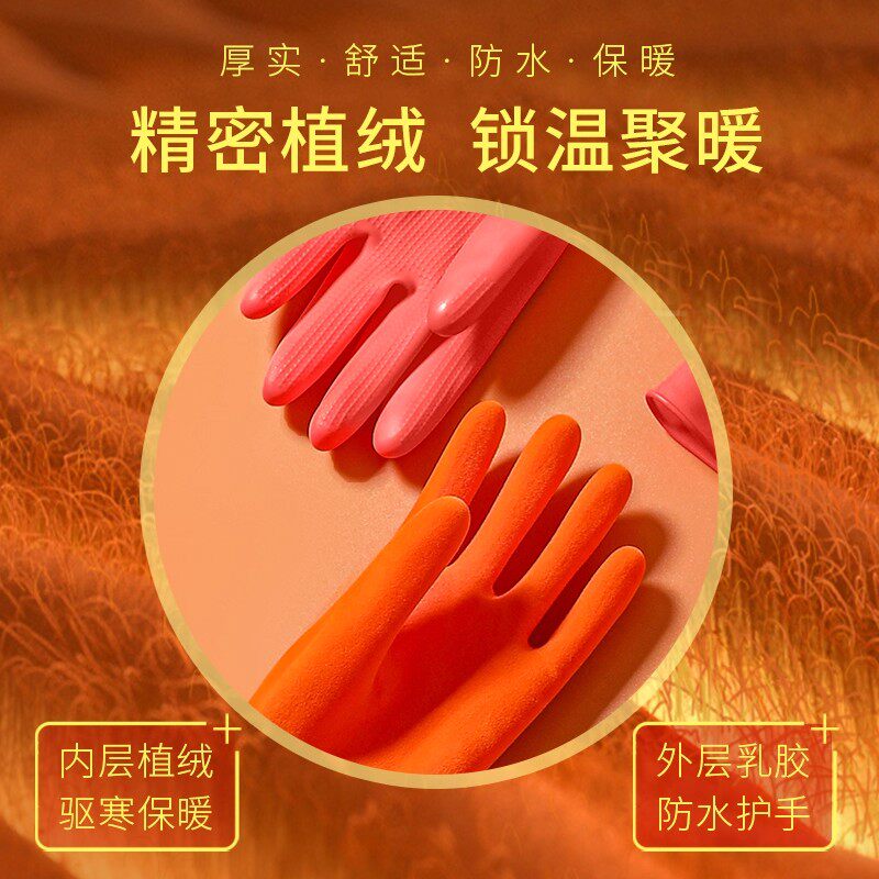 加长洗碗洗衣服手套加绒家务耐用女防水加厚冬季加棉洗菜薄款乳胶