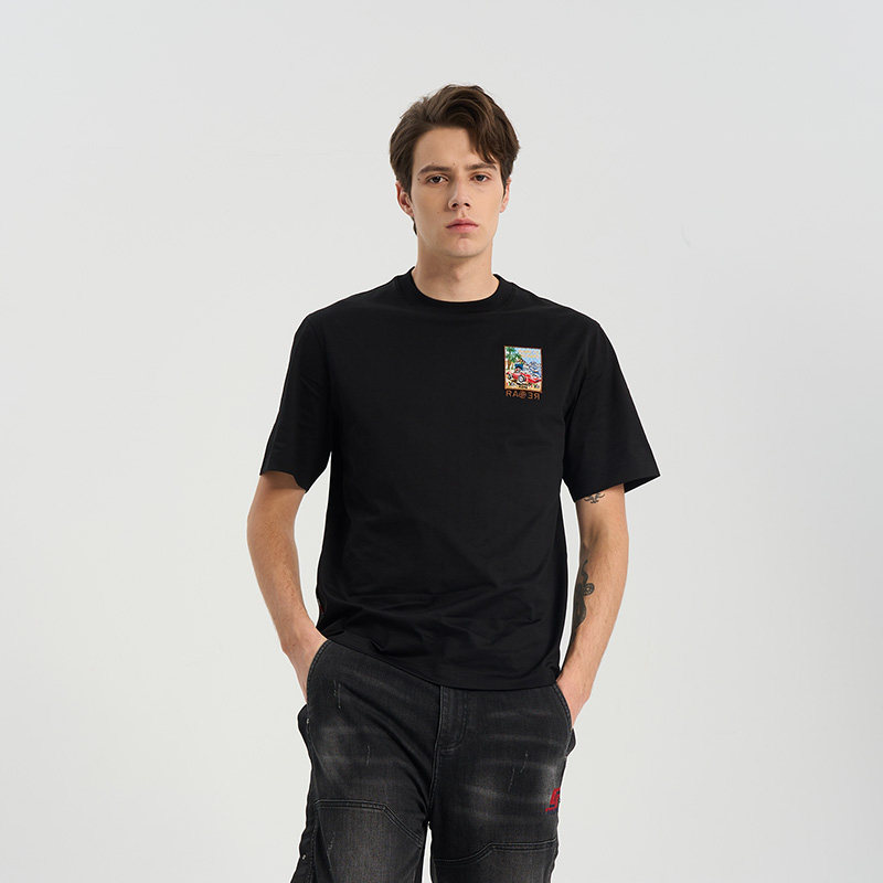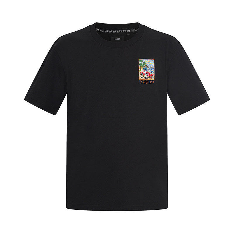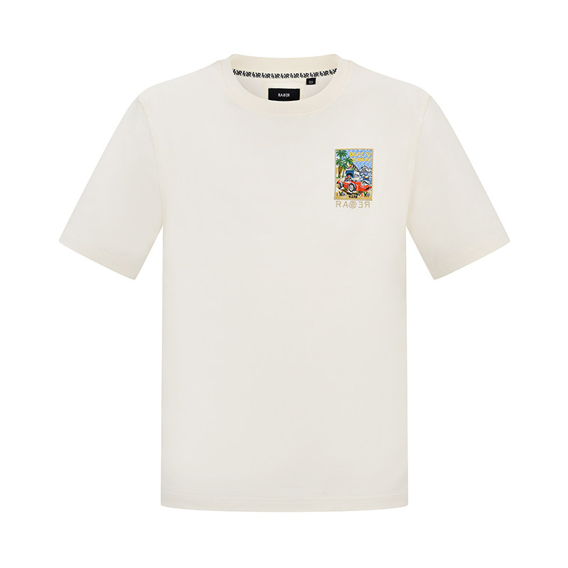 RARE威雅男装夏季新款男士白色简约款T恤方形绣花标圆领短袖