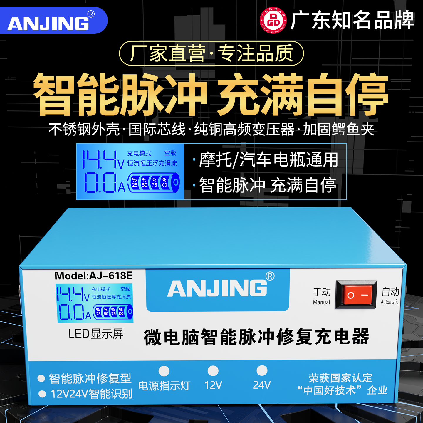 汽车电瓶充电器12v24v通用蓄电池摩托车全自动智能充电机充满自停