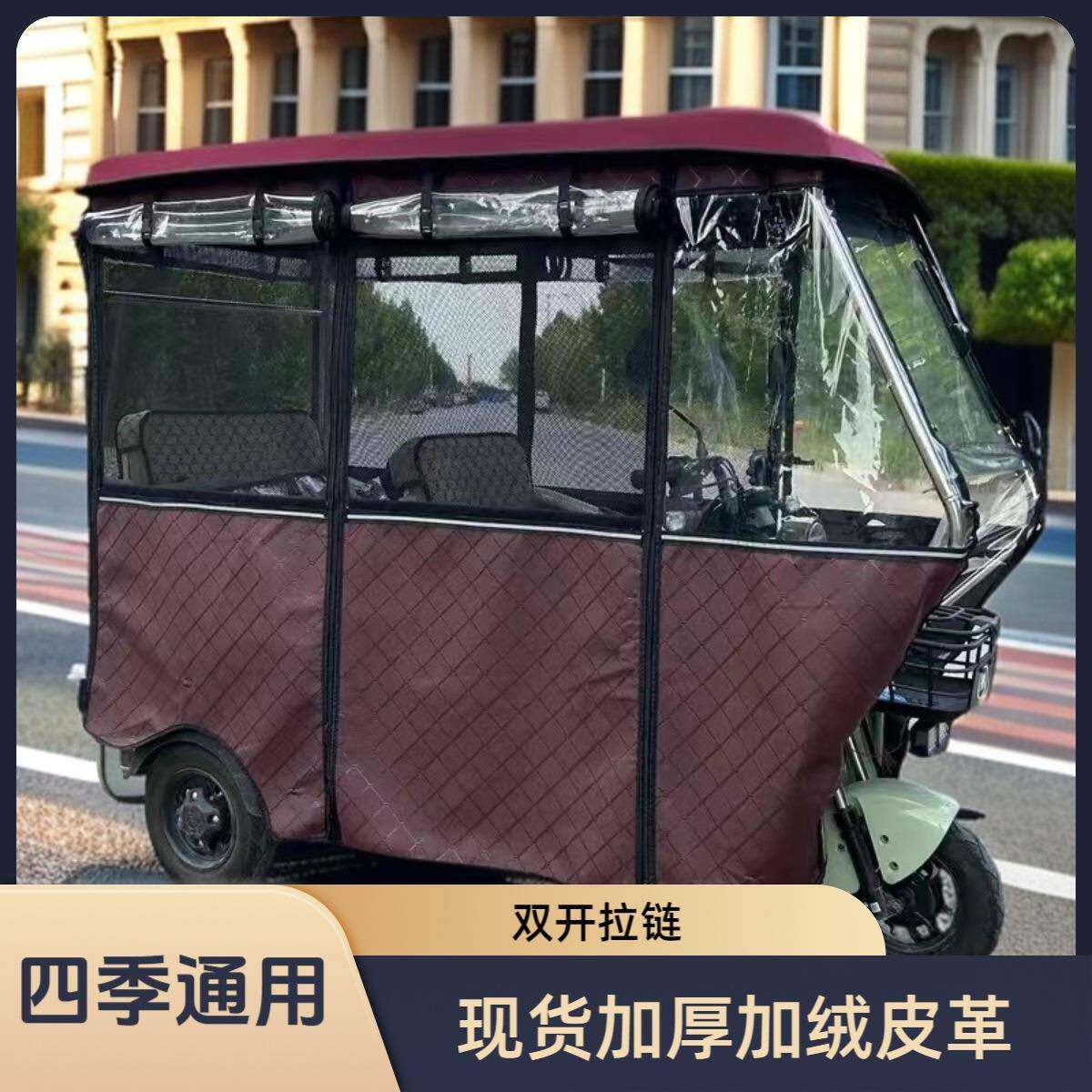 电动三轮车车棚雨篷老年代步挡风帘超厚加厚皮革透明雨帘篷布防冻