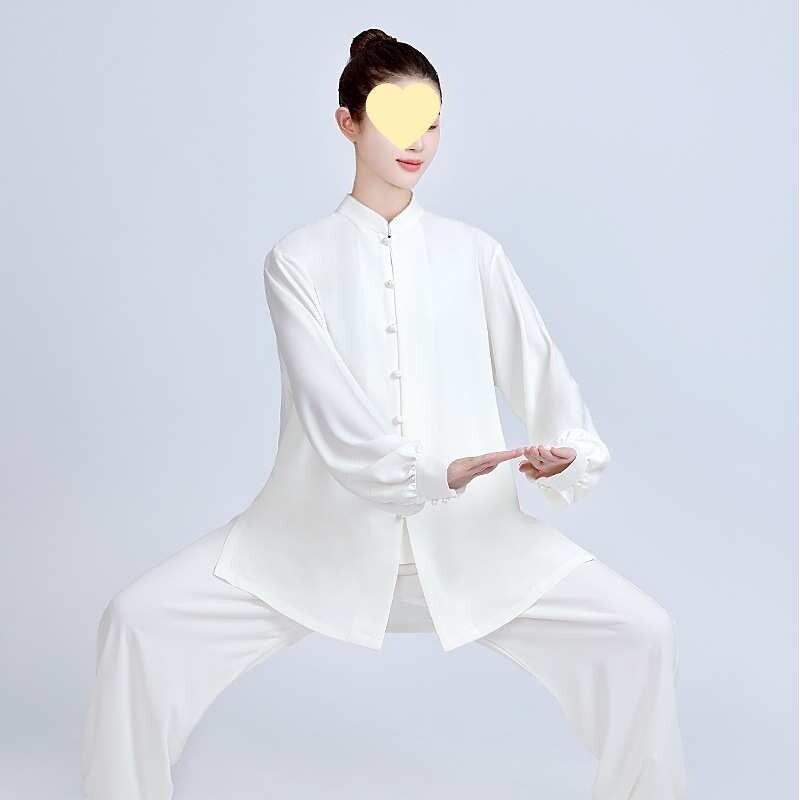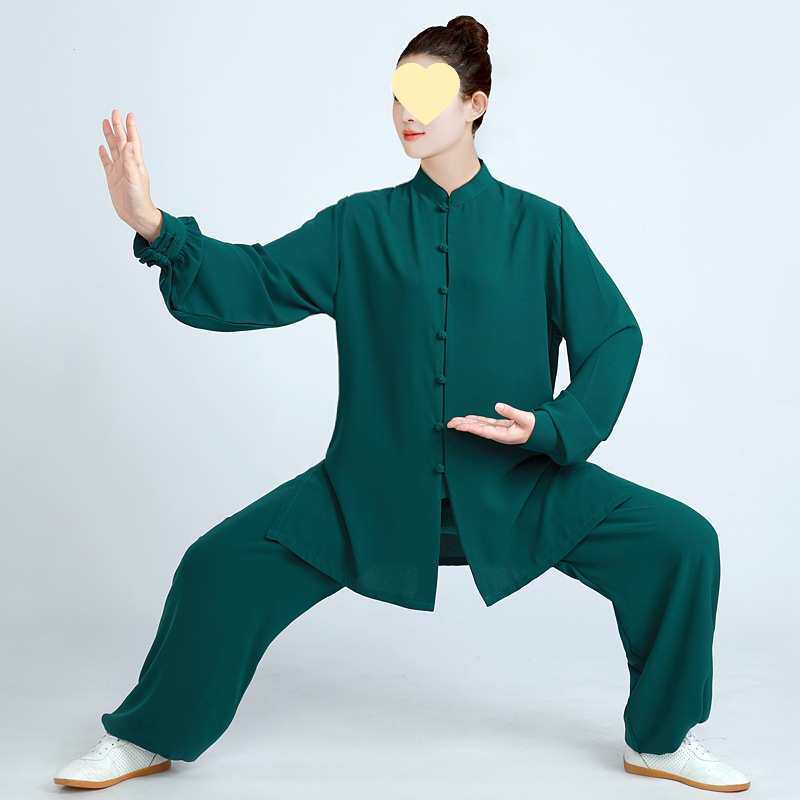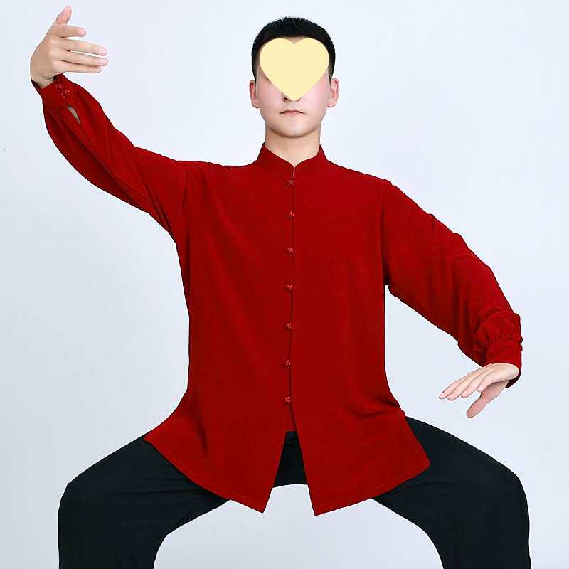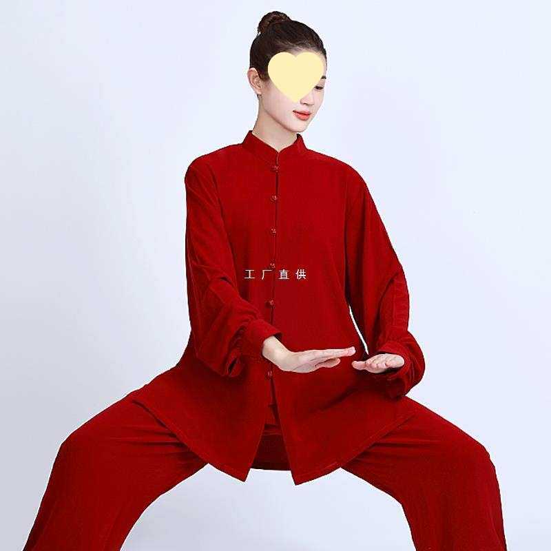 春秋太极服女新款丝麻太极拳练功服男红色武术表演服中国风八锦缎