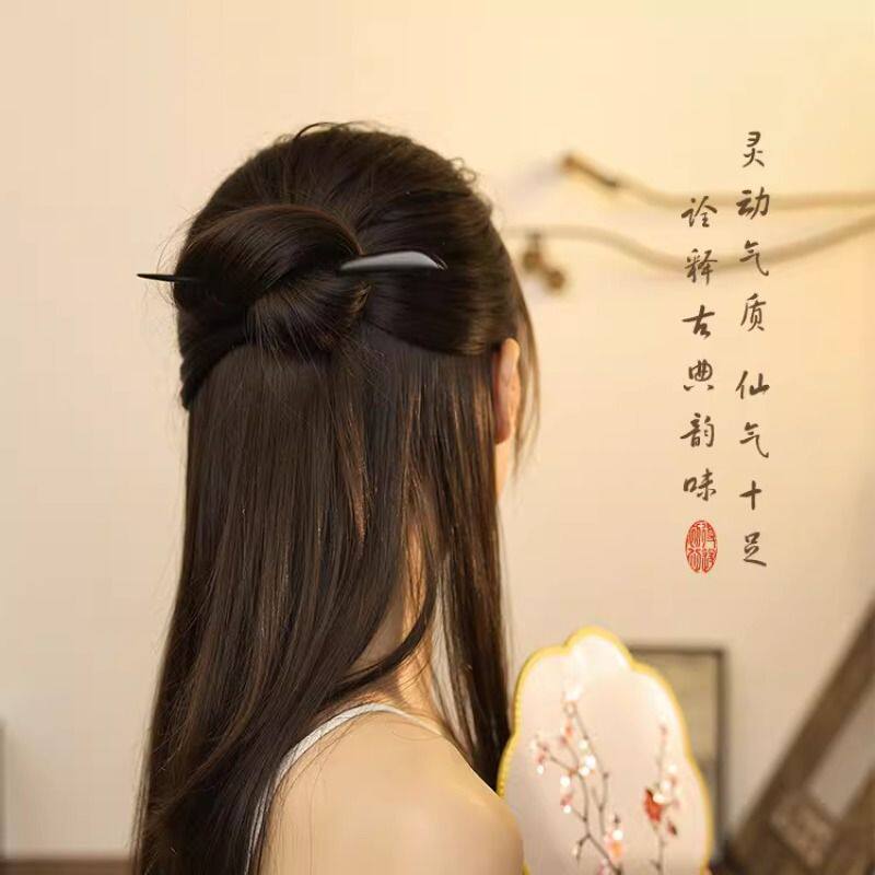 新中式发簪古风女盘发簪子黑檀木簪中国风汉服发钗日常通勤