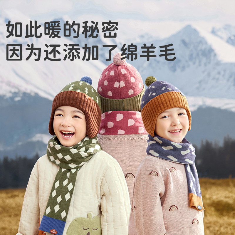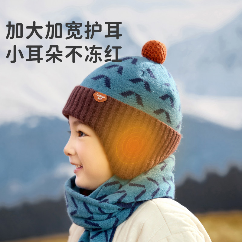 柠檬宝宝儿童帽子秋冬季男童女孩围巾手套护耳帽宝宝羊毛针织帽