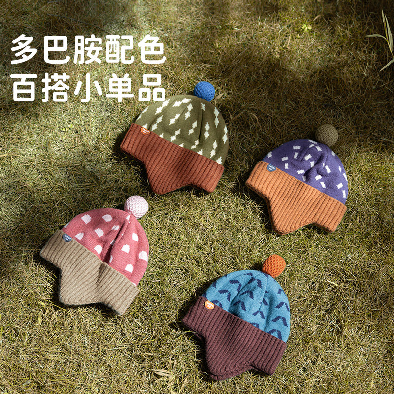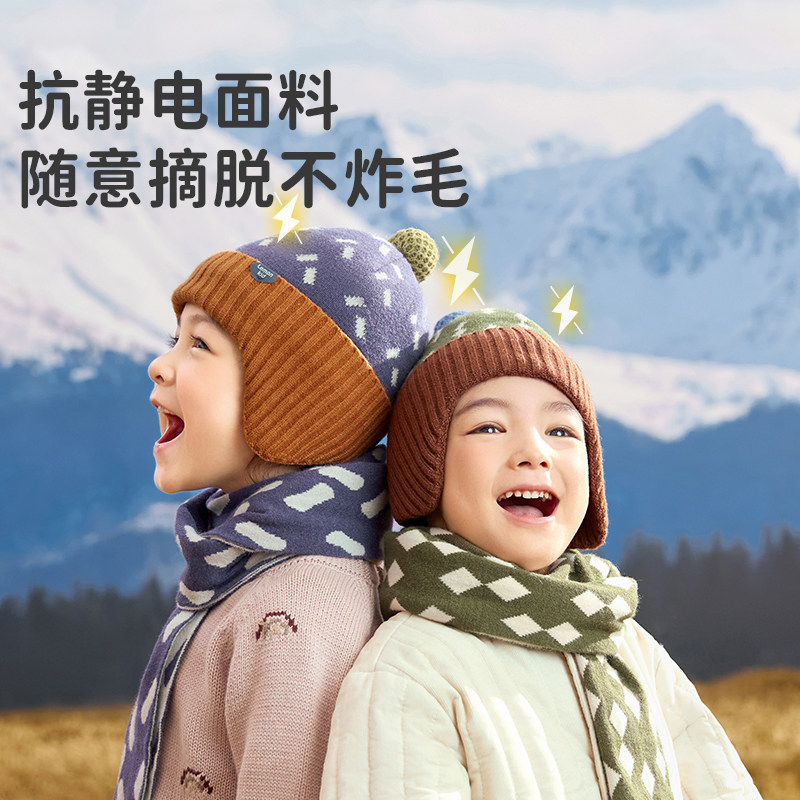 hugz儿童帽子围巾秋冬户外男孩女孩保暖针织毛线帽护耳防风熊仔帽