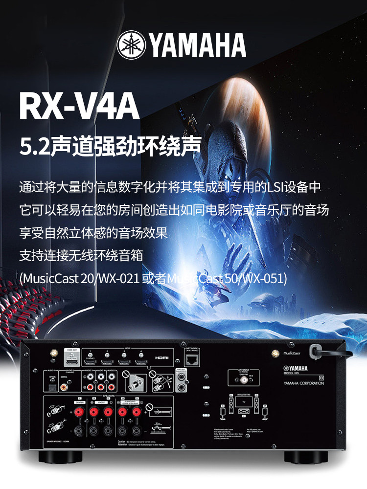 现货Yamaha/雅马哈RX-V4A 家用功放机5.2声道8K家庭影院AV放大器