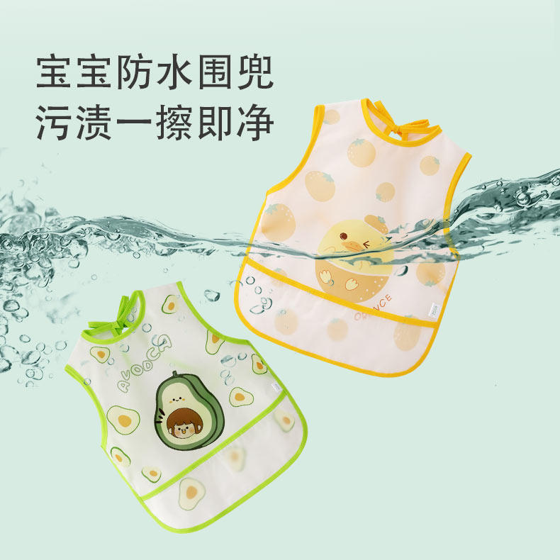 婧麒宝宝吃饭围兜防水防脏免洗儿童罩衣男女婴儿饭兜无袖夏季围裙
