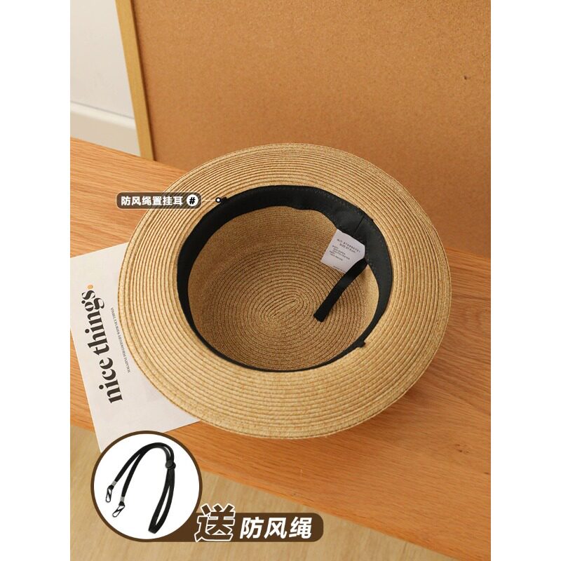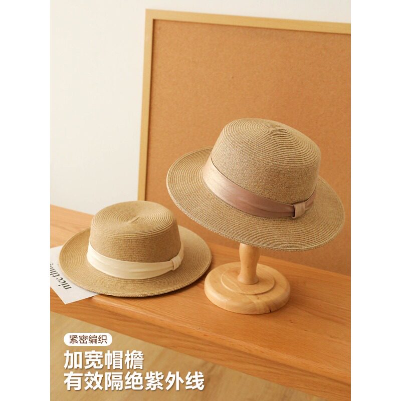 法式平顶草帽女夏季海边沙滩度假大帽檐防晒遮阳帽子时尚平沿礼帽