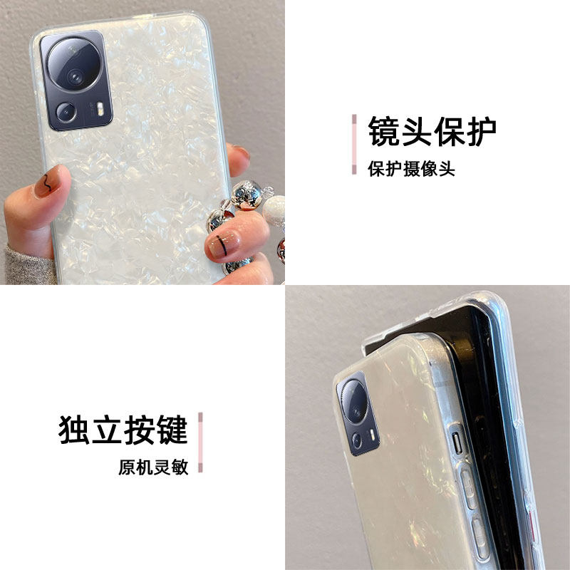 直边简约贝壳纹适用小米Civi2手机壳透明11青春版高级感13Pro新品新款14潮流Civi3全包SPro防摔Note外壳