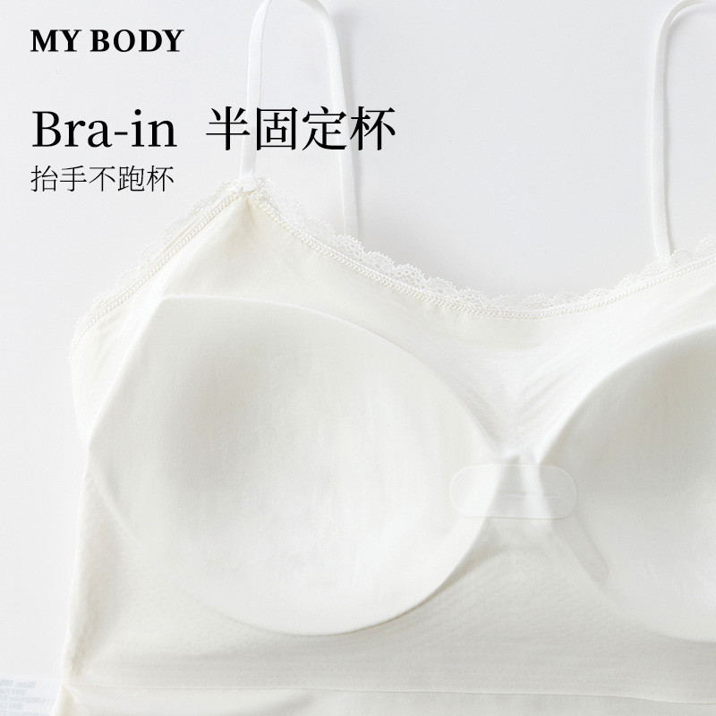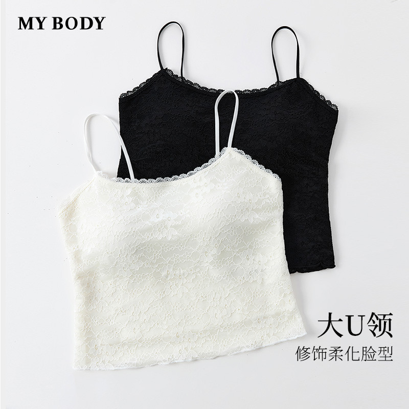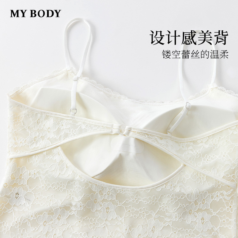 商场同款MYBODY新款性感蕾丝上衣女打底内搭带杯垫可外穿吊带背心