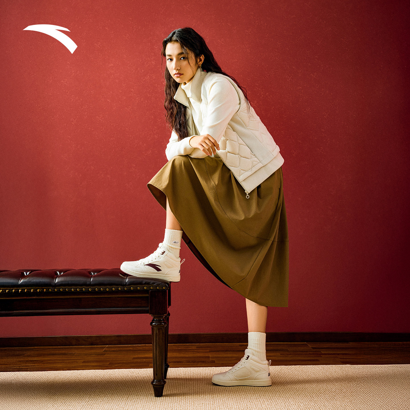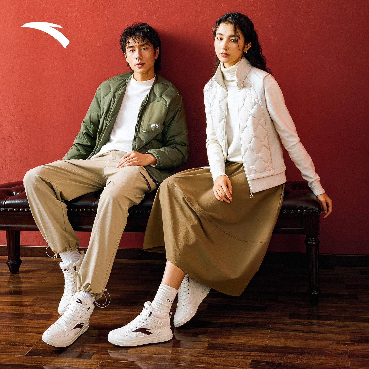 安踏元年2.0丨高帮板鞋女春季新款皮面增高休闲鞋百搭运动鞋子