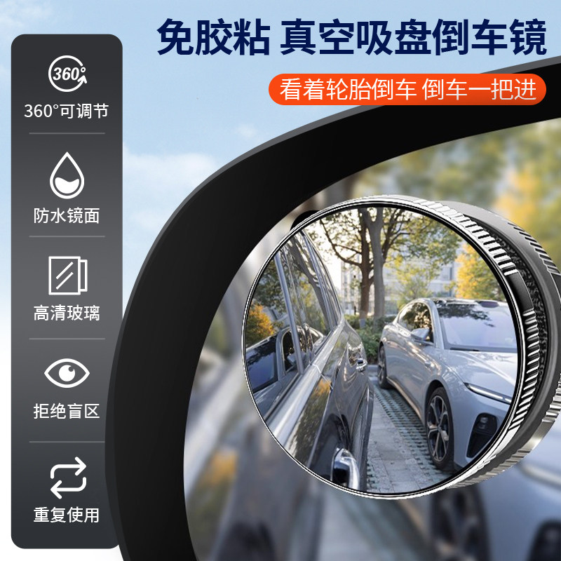 汽车倒车小圆镜后视镜辅助镜高清反光盲点镜360度盲区神器吸盘式
