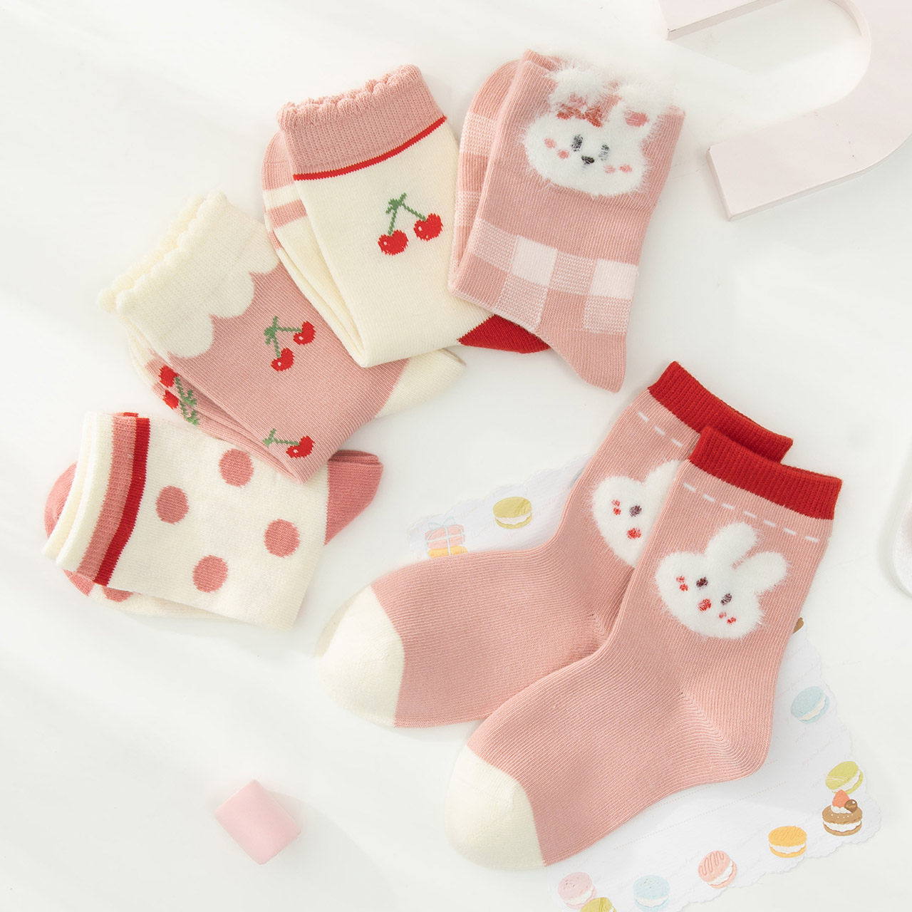 caramella卡通童袜男女童秋冬季新款百搭可爱透气儿童棉袜中筒袜q
