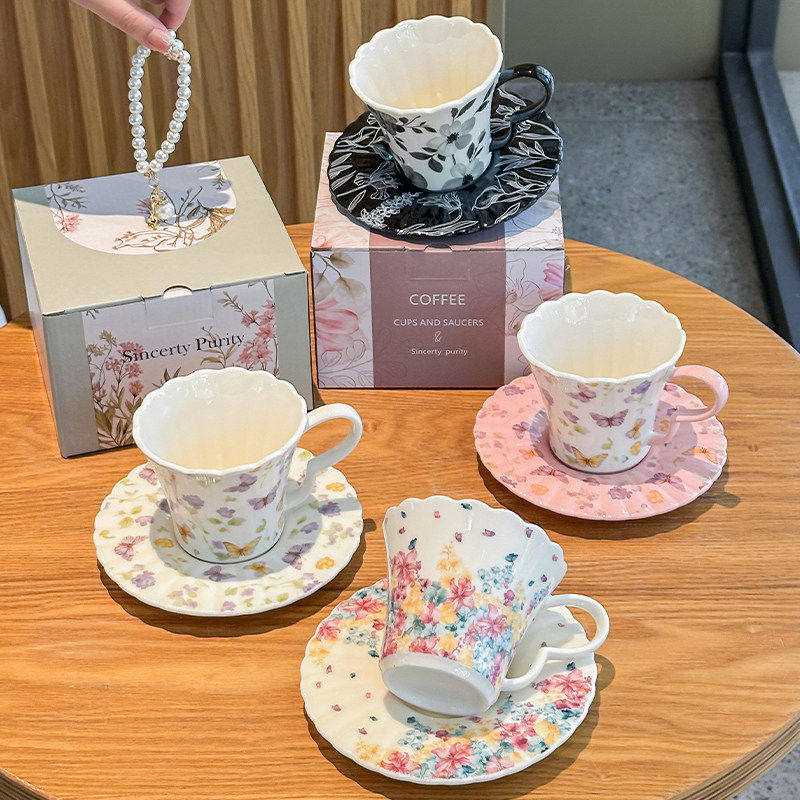 粉蝴蝶陶瓷马克杯咖啡杯碟礼盒套装送女生生日礼物新婚结婚伴手礼