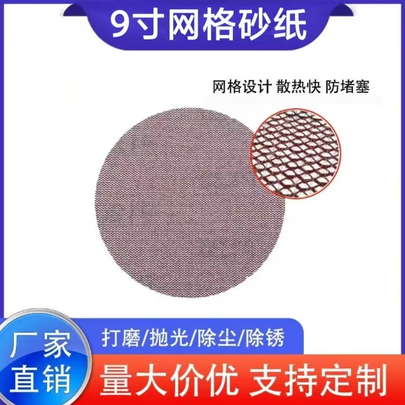 墙面打磨网格砂9寸植绒圆盘网格砂纸金属抛光打磨砂盘防堵网状砂